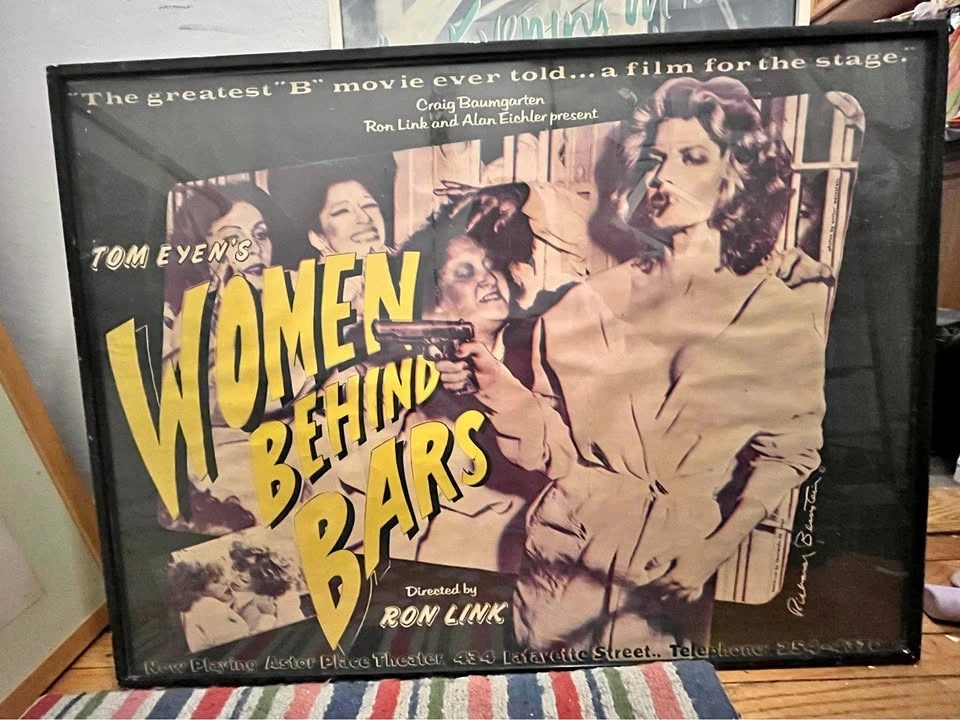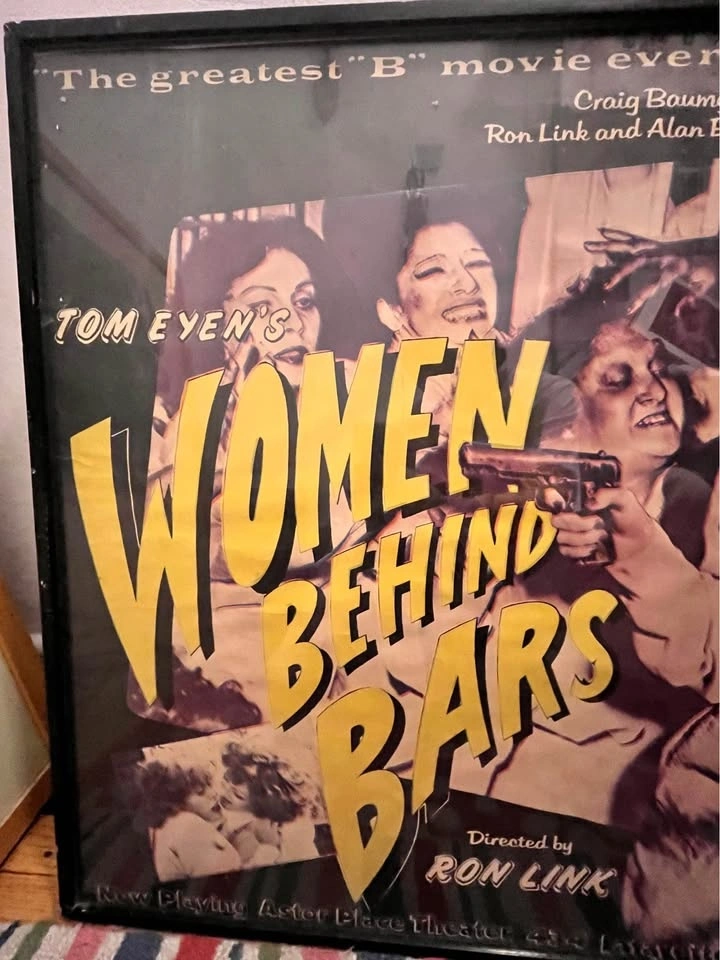 Original vintage poster for the 1975 world premiere of Tom Eyen's play Women Behind Bars, directed by Ron Link. Framed, 30x40. Pick up or meet up.