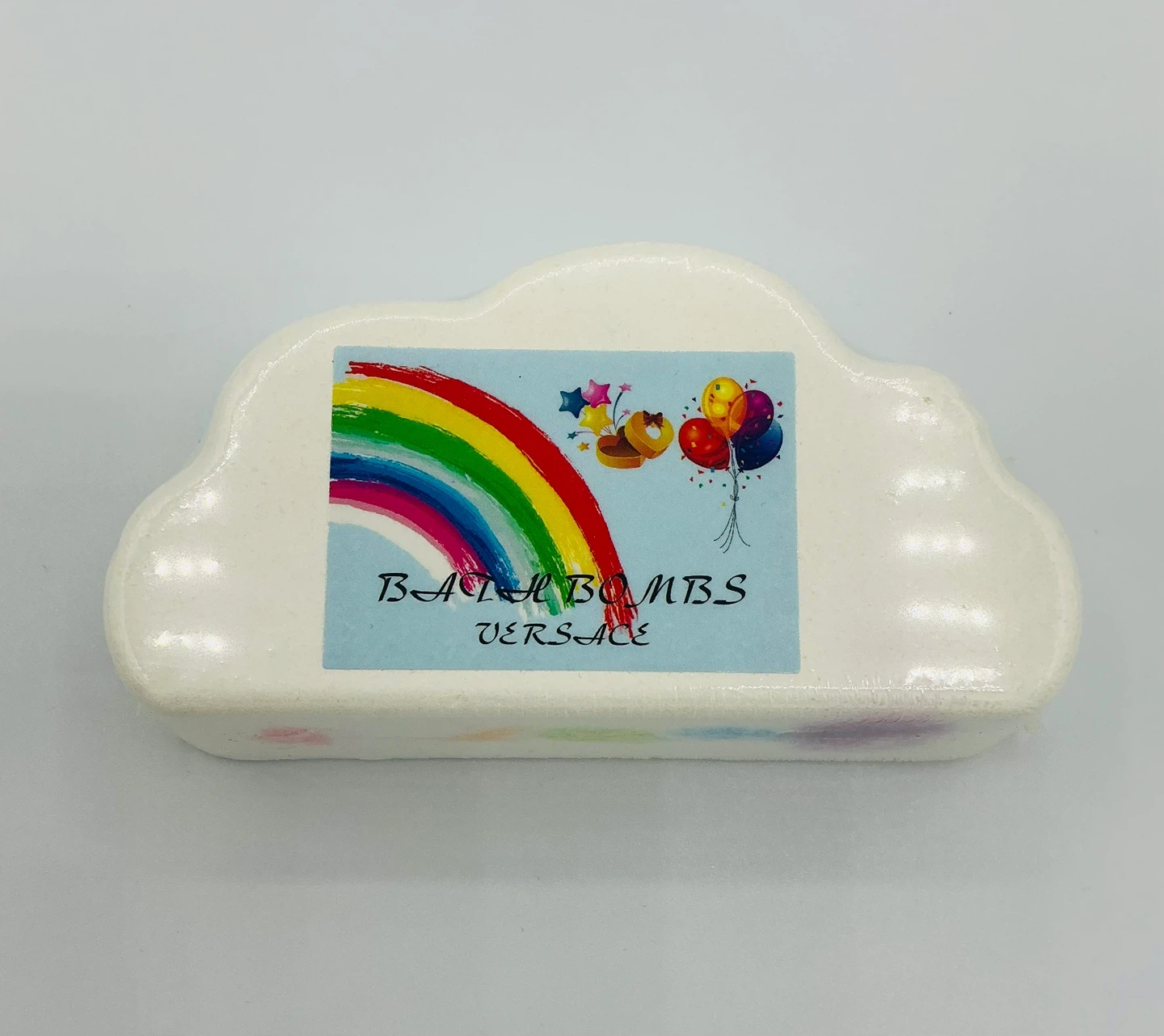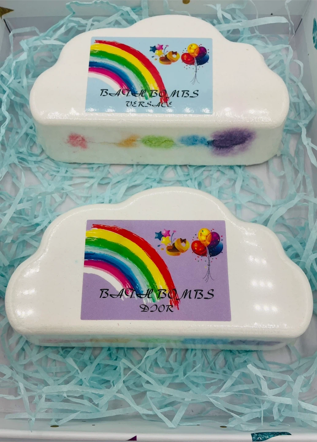Cloud-shaped bath bombs in Versace and Dior with vibrant rainbows. These bath bombs add colour and fun to your bath time. They're great for kids and adults alike! 2 available for $6 each.