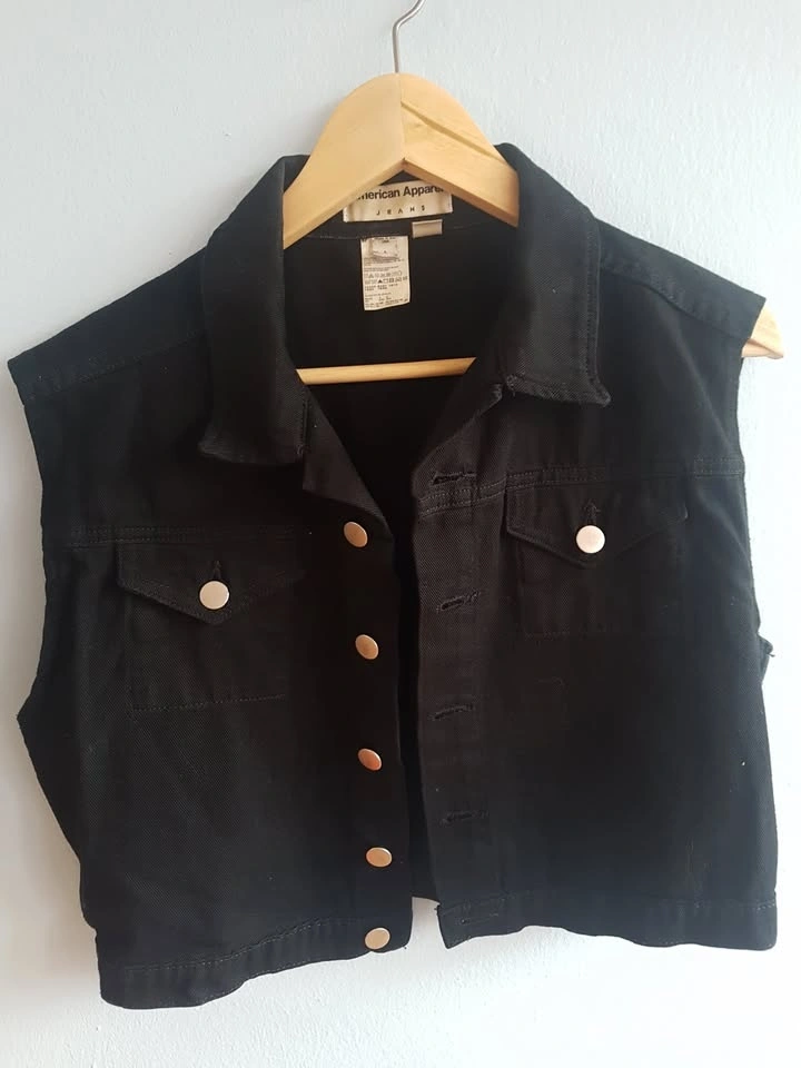 American Apparel Cropped Black Denim Vest - Size L
