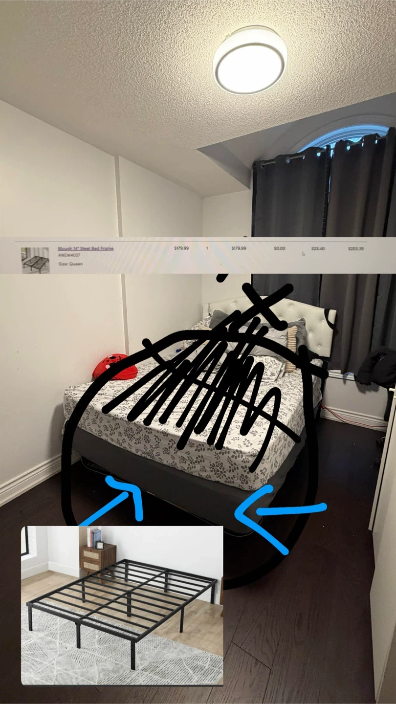 This is a Bough 14" steel bed frame in Queen size. It's made of durable steel with a simple, sturdy design. Great for supporting your mattress without needing a boxspring!