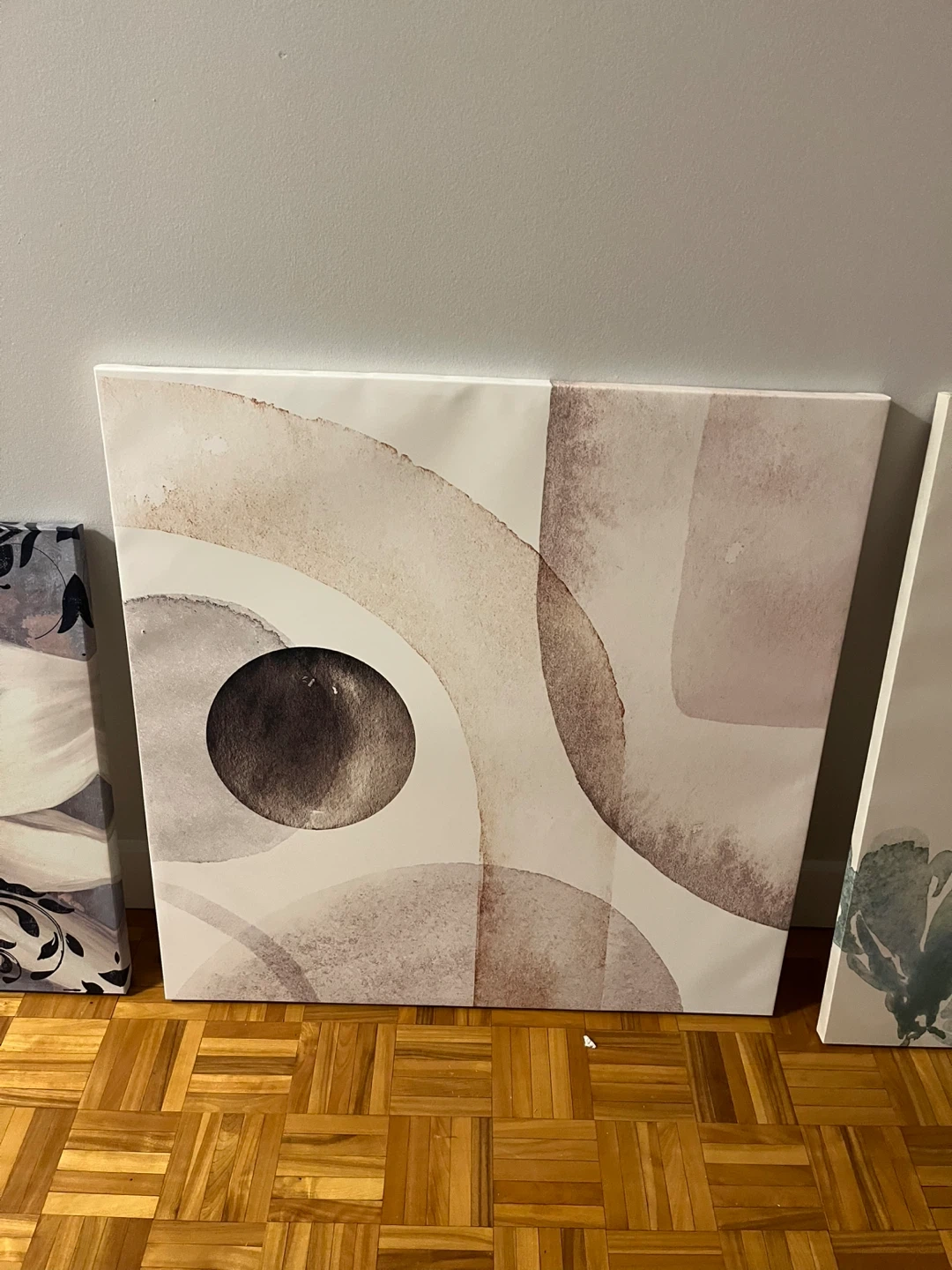 Includes floral and abstract designs. Canvas material. Great for adding a touch of art to any room! $30 is for all three pictures.