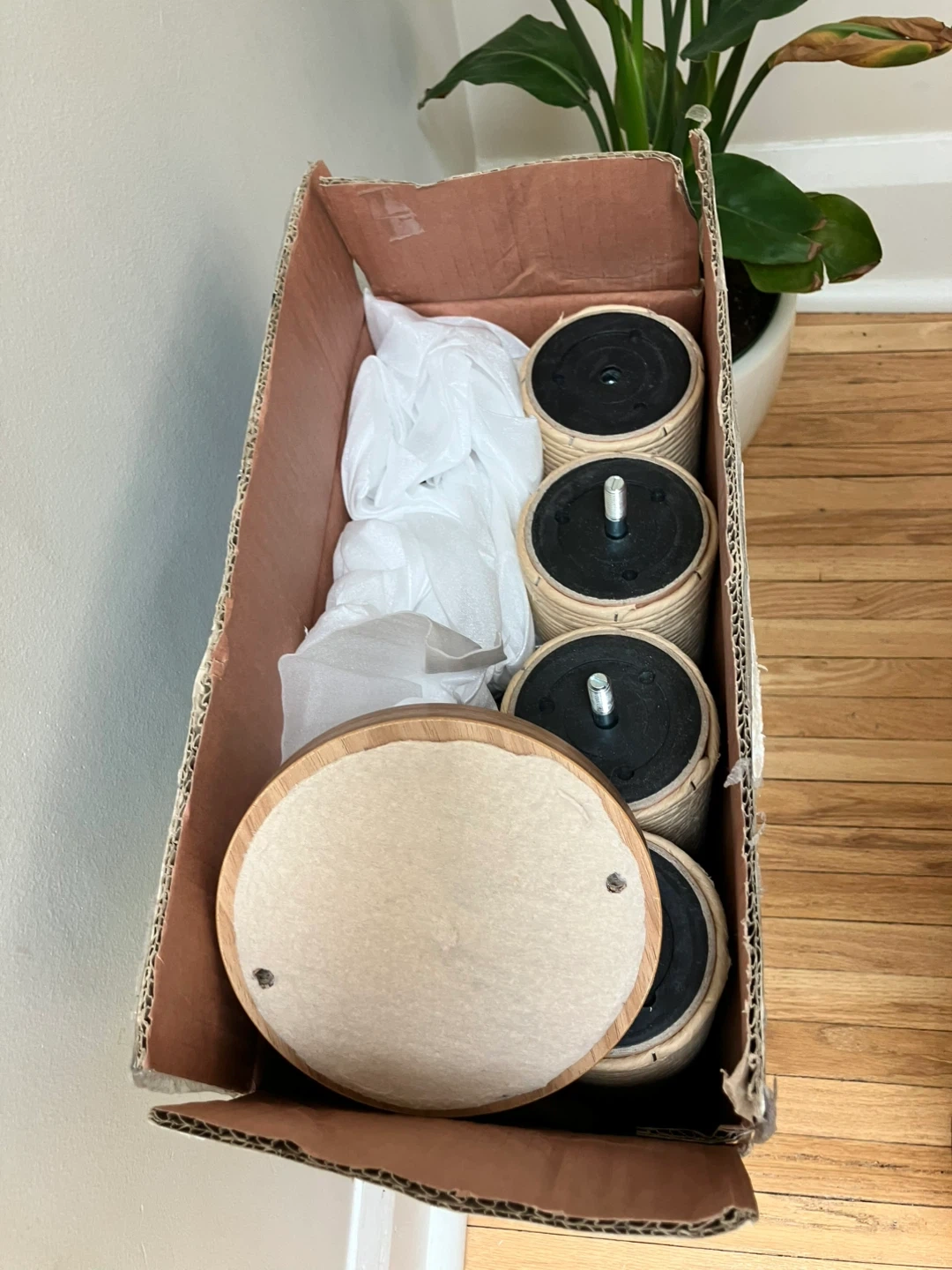 Was assembled but did not fit our ceiling height so unused. Comes in original packaging with additional hanging toys that were purchased.