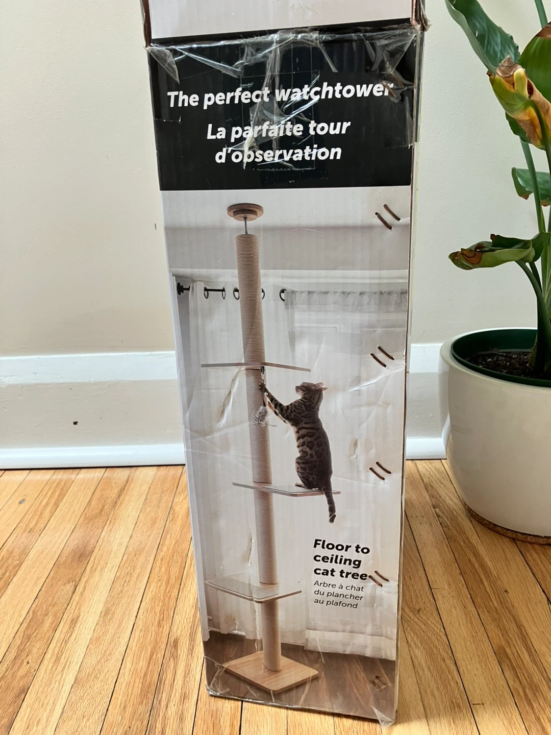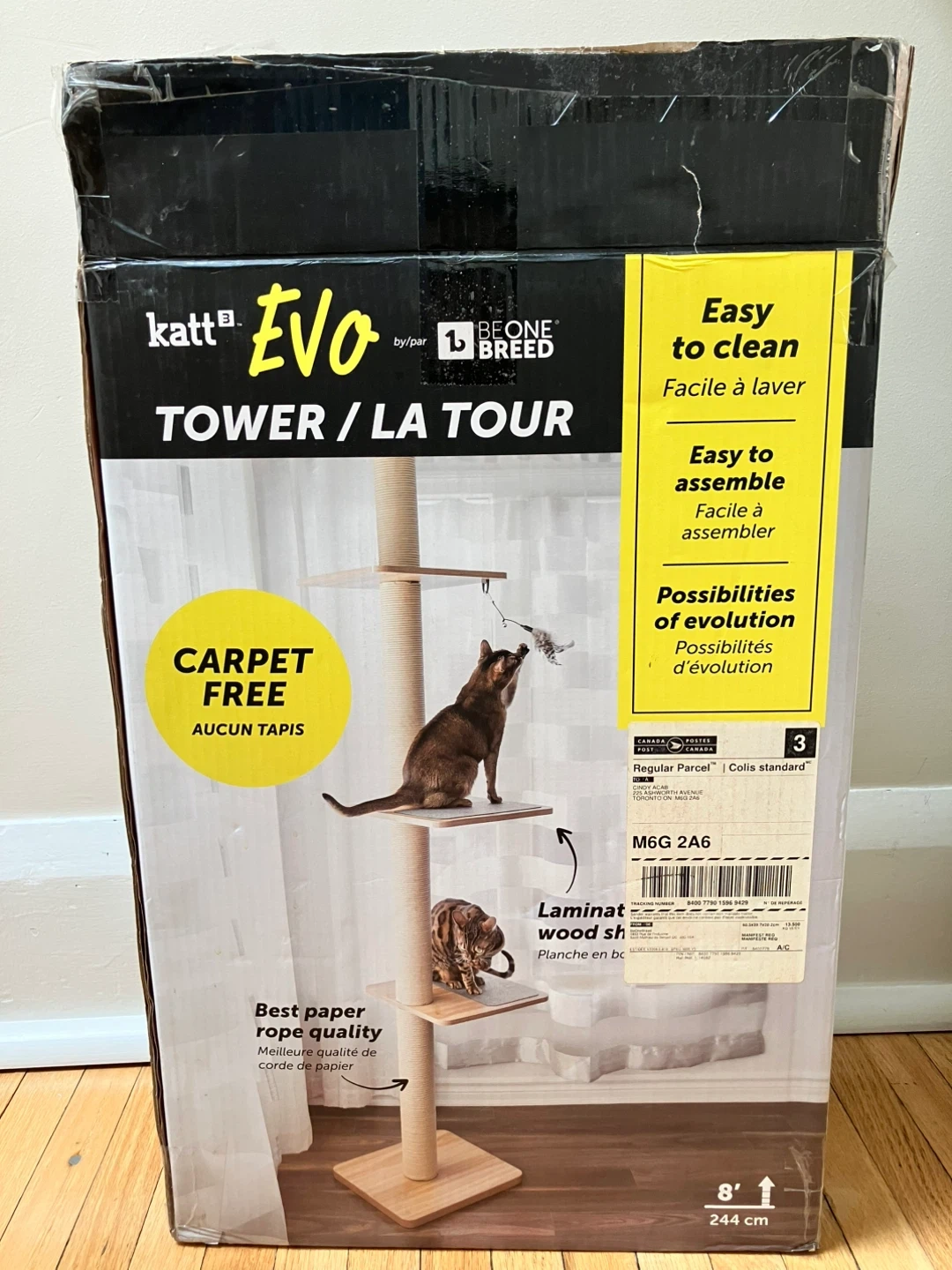 Be One Breed Katt 3 Evo Cat Tower. Floor to ceiling 8 foot pressure mounted cat tower with paper rope and wood bases.