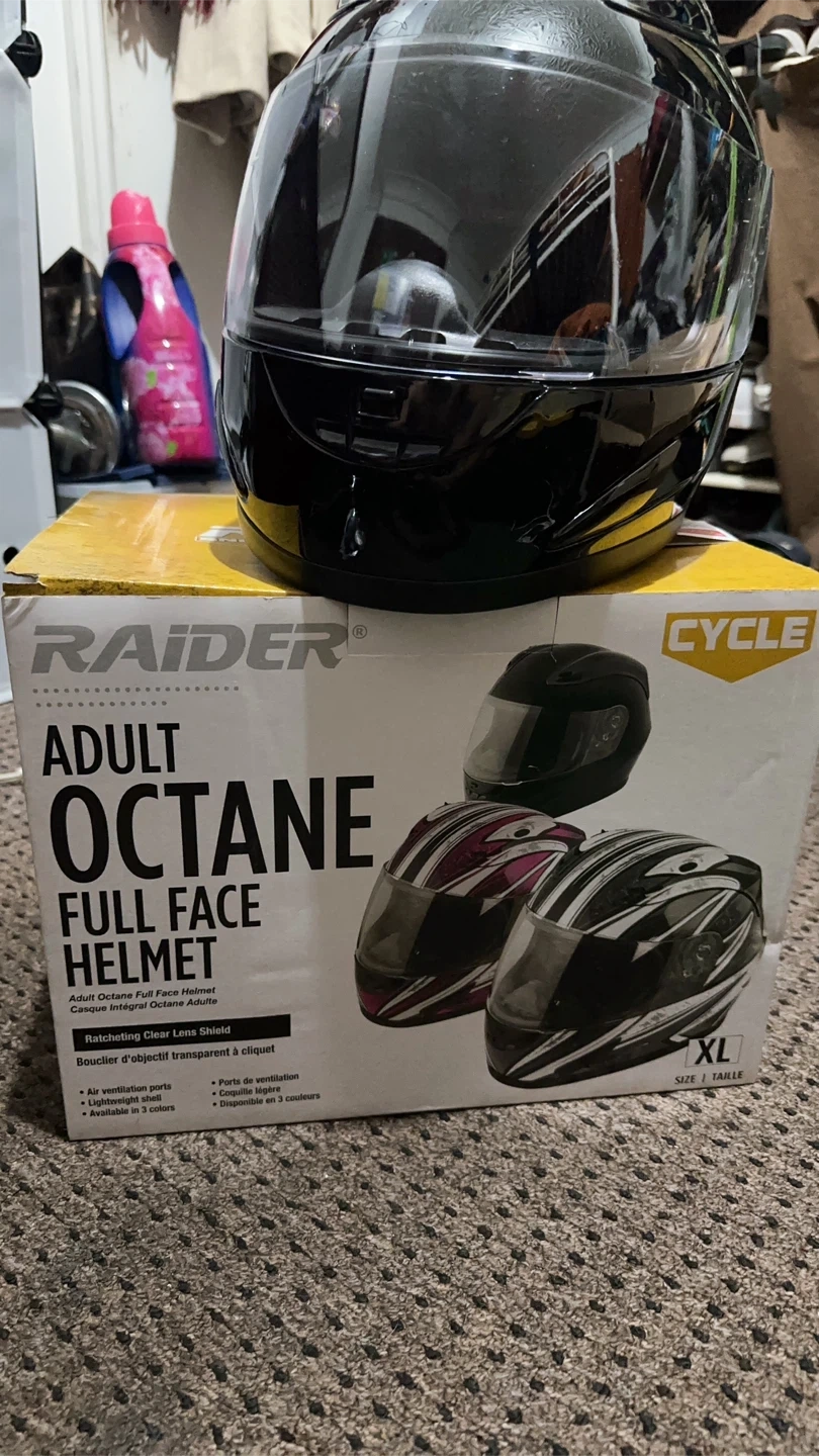 Selling a Raider Octane adult full-face helmet, size XL! It's a lightweight thermoplastic shell design, and the box is included. It also has air ventilation ports for comfort