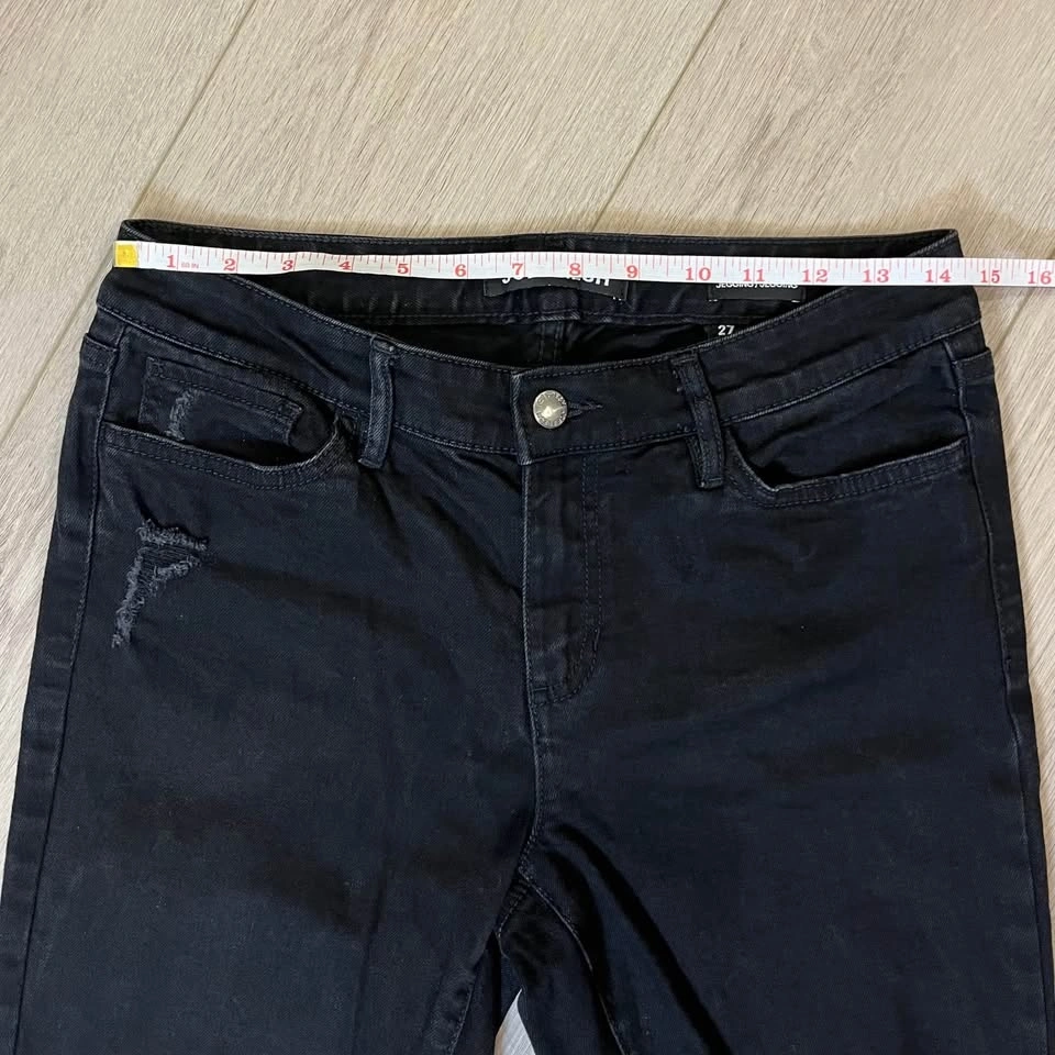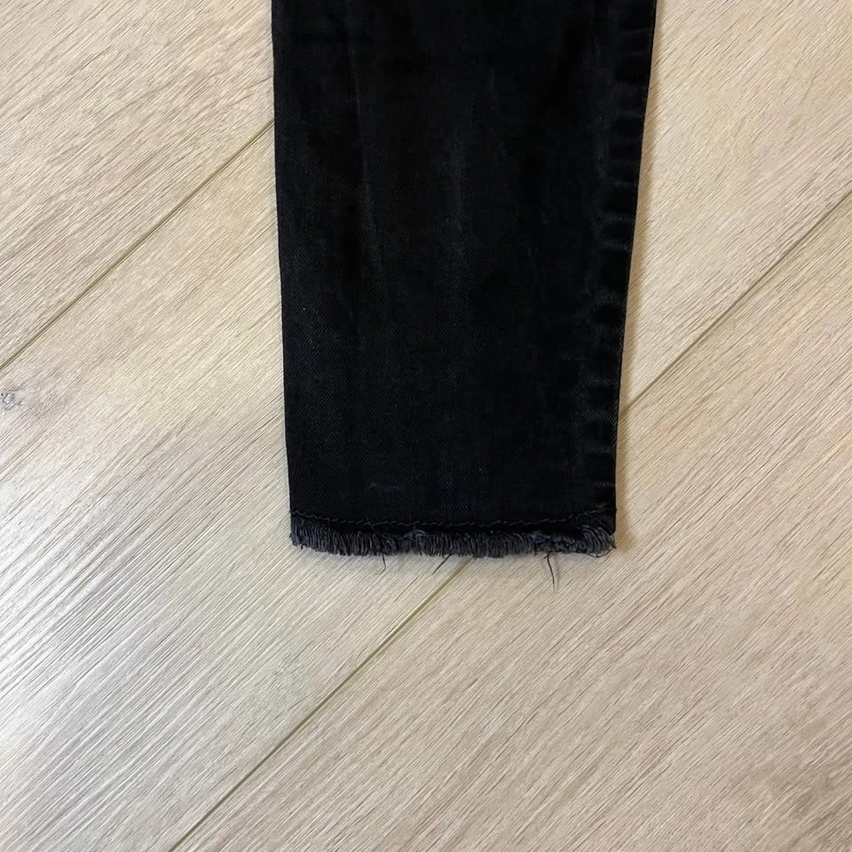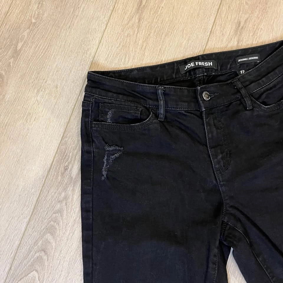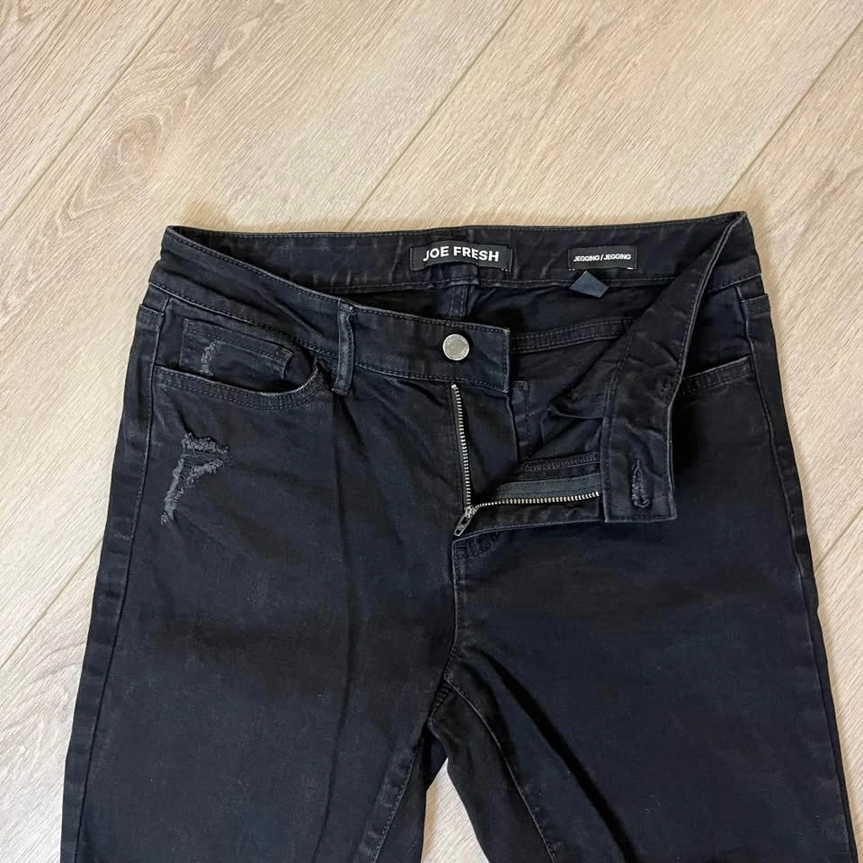 JOE FRESH distressed black women’s skinny jeans. Zipper + button closure.