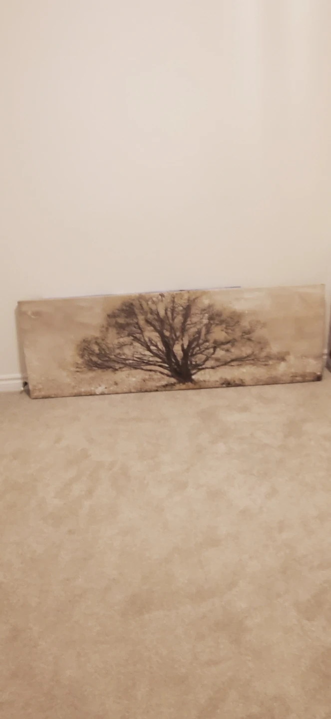 This is a stretched canvas print featuring a silhouette of a bare tree against a muted, textured background. It's a long, rectangular piece that would suit a variety of decor styles. It's ready to hang for your living room or hallway!
