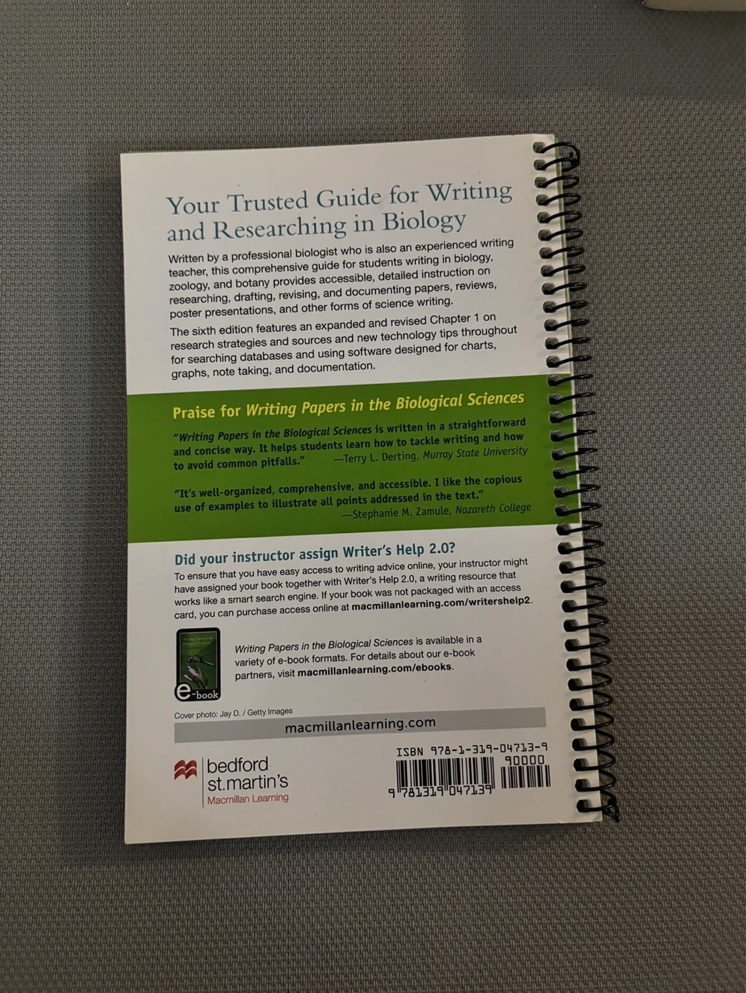 This is the sixth edition of Writing Papers in the Biological Sciences by Victoria E. McMillan. It's a guide for writing and researching in biology