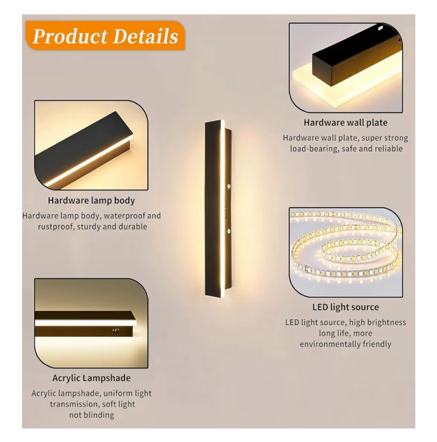 - Hardware lamp body: waterproof and rustproof, sturdy and durable