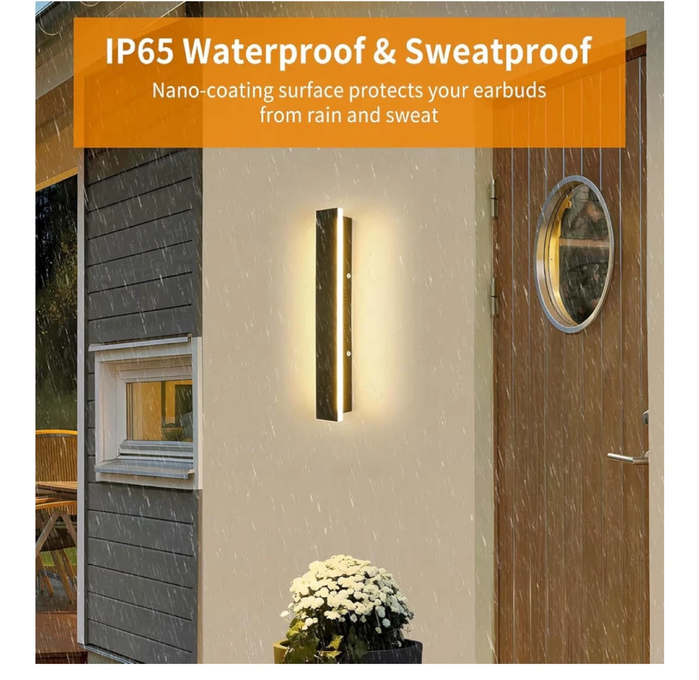 This outdoor modern wall light is perfect for adding a touch of style to your home's exterior. It is IP65 waterproof and sweatproof, so it can withstand the elements. The nano-coating surface protects your earbuds from rain and sweat.