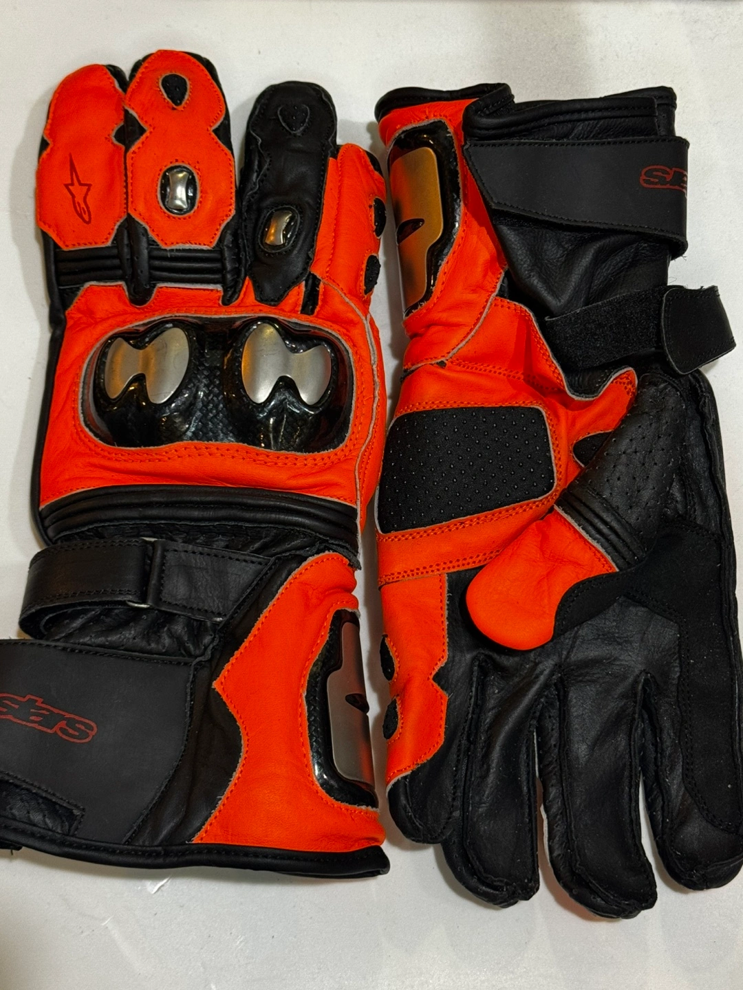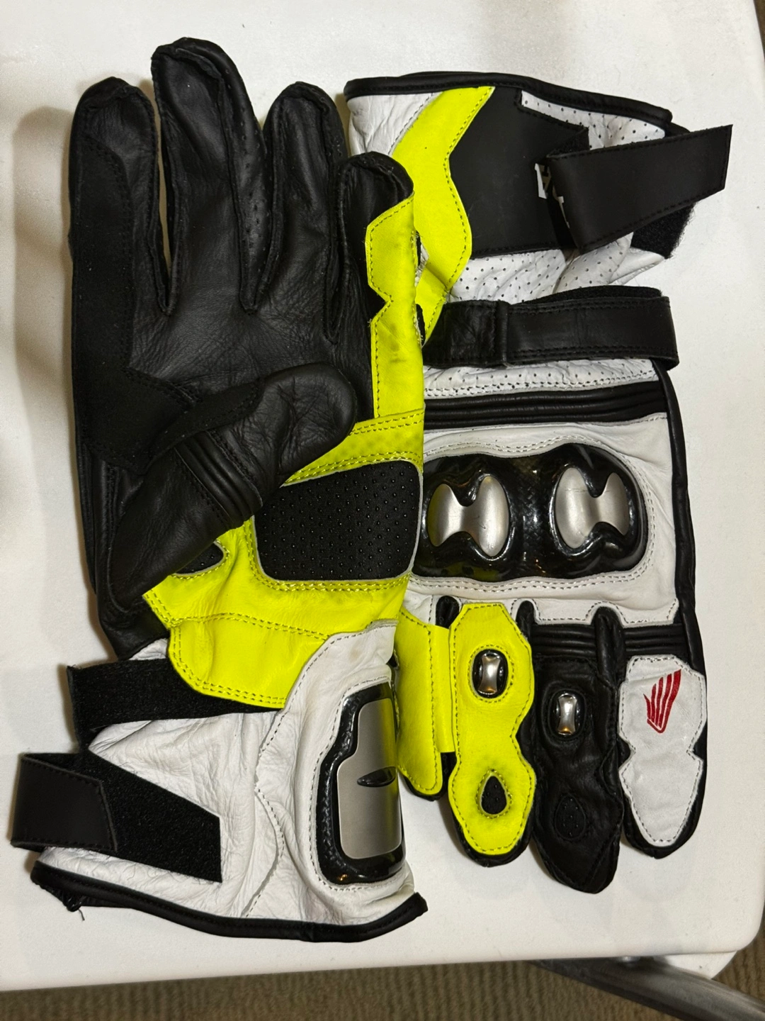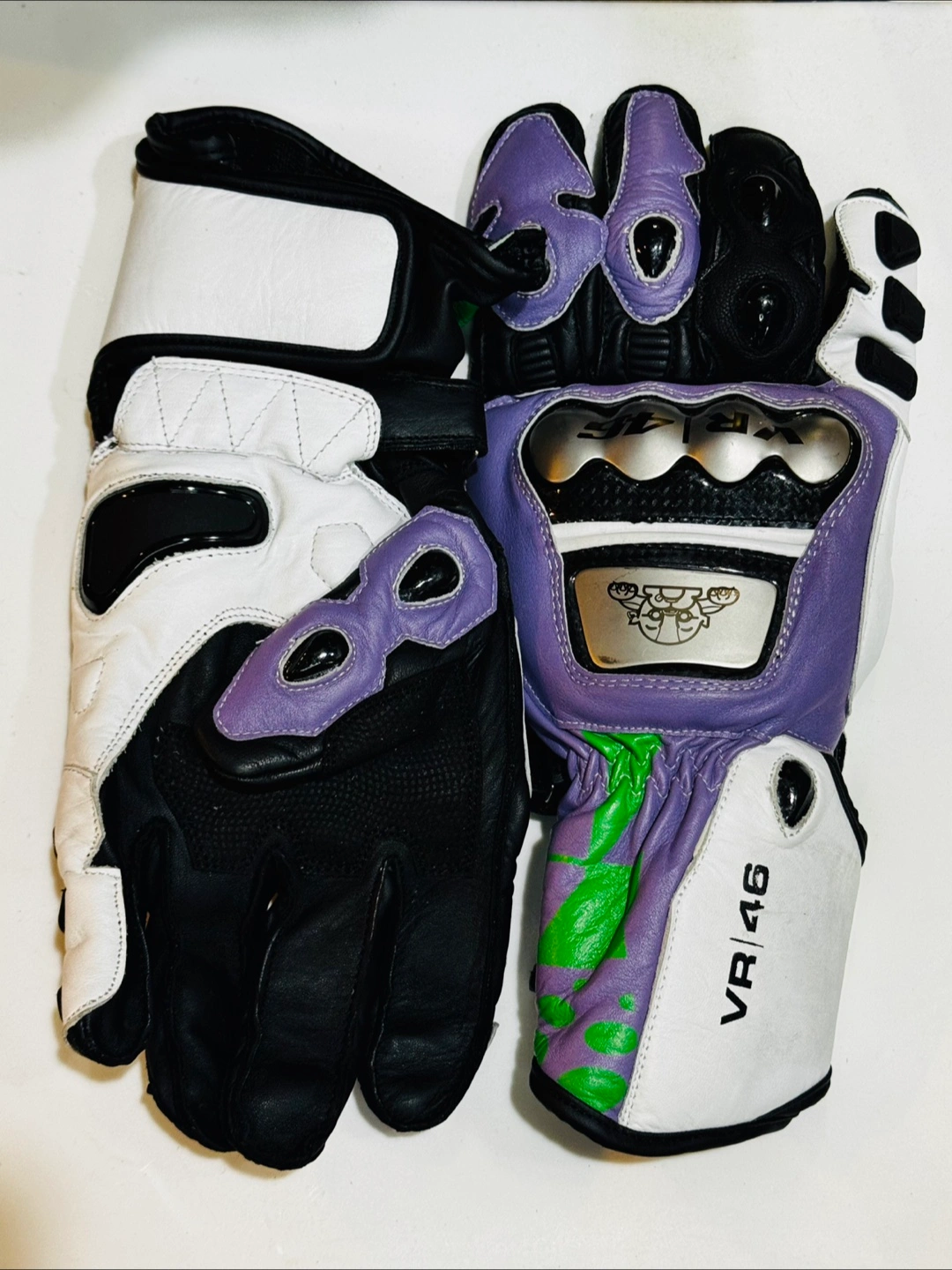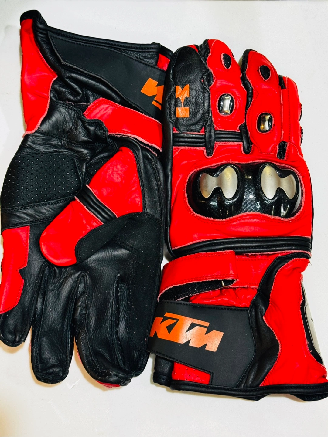 Motorcycle gloves in various colours and designs. Some have knuckle protection and wrist straps. You can use these to feel more secure while on the road.
