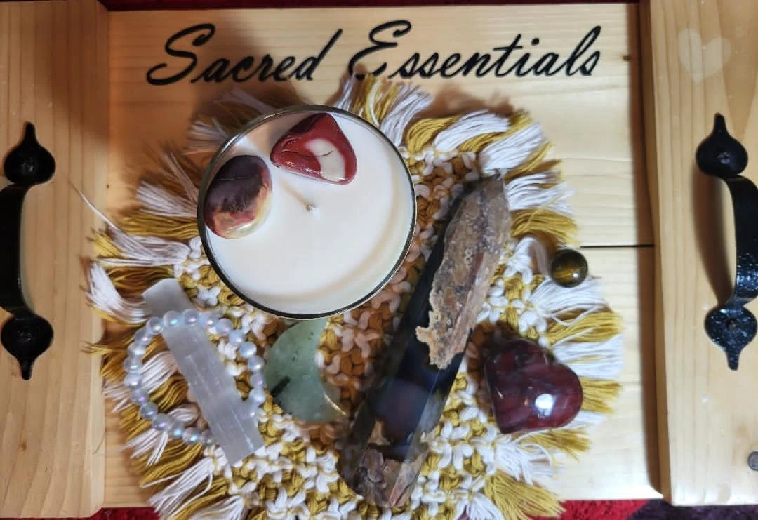 Handpoured Roast Espresso Candle topped with Mookaite Jasper (55+hr burn & 100% Soywax )