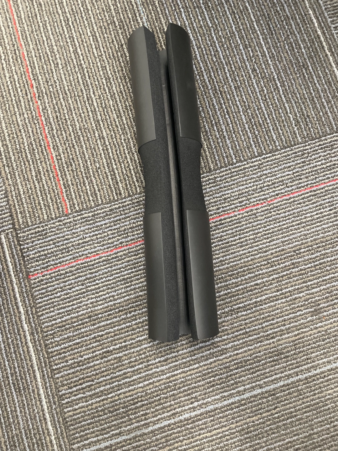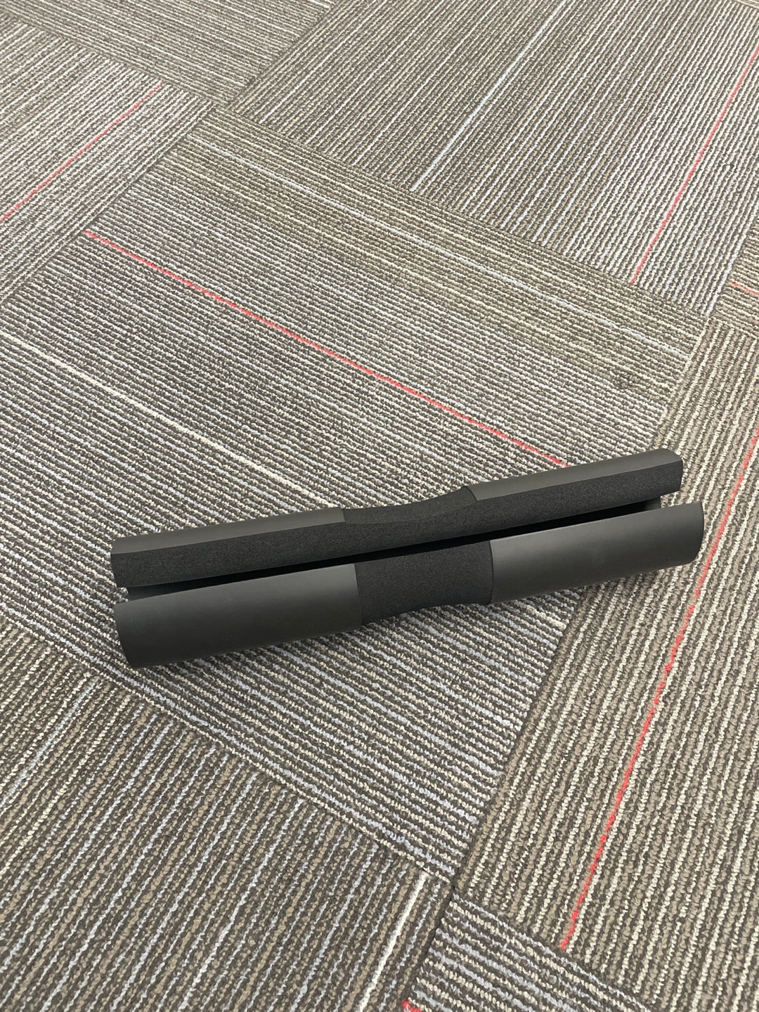 Two black foam roller handles. Perfect for adding extra grip and support to your workouts. Lightweight and easy to store.