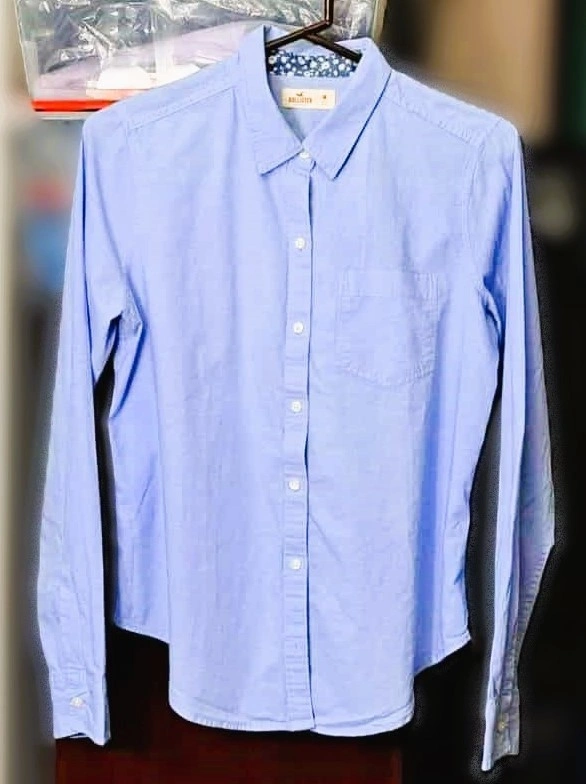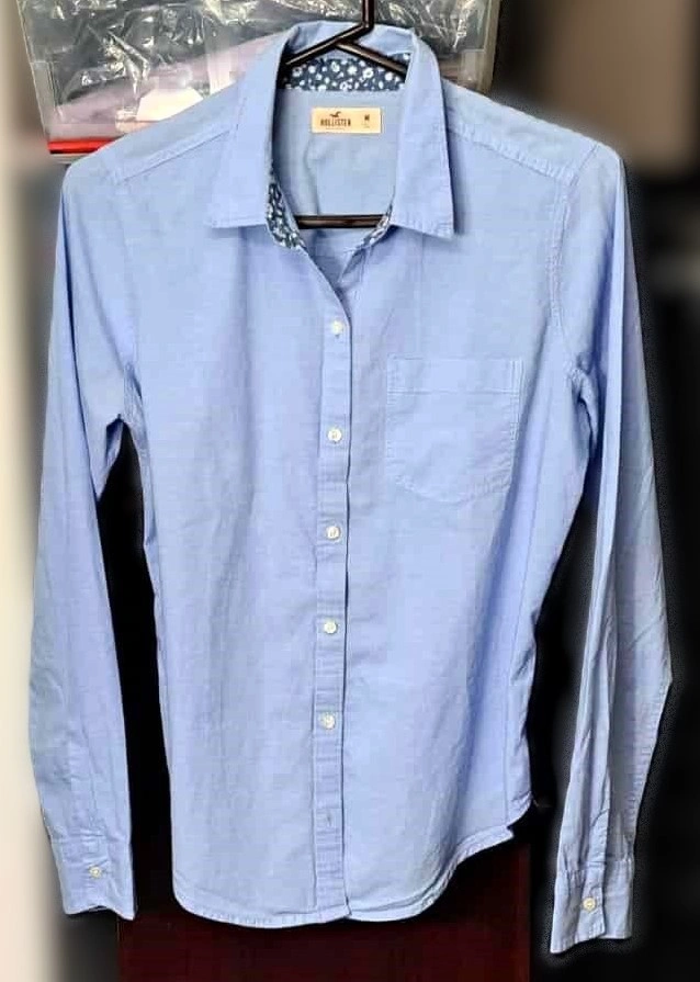 Original price $49. Elevate your everyday wardrobe with this classic Hollister Oxford Icon Shirt. This timeless light blue button-down features a beautiful navy and white floral-print interior collar and cuff lining, adding a unique, feminine touch to a closet staple. Made from soft, high-quality Oxford cotton, it’s perfect for layering or wearing solo for a crisp, clean look.