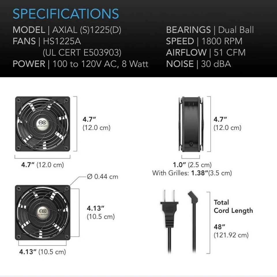 AXIAL 1225 Muffin 120V AC Cooling Fan 120mm Low Speed