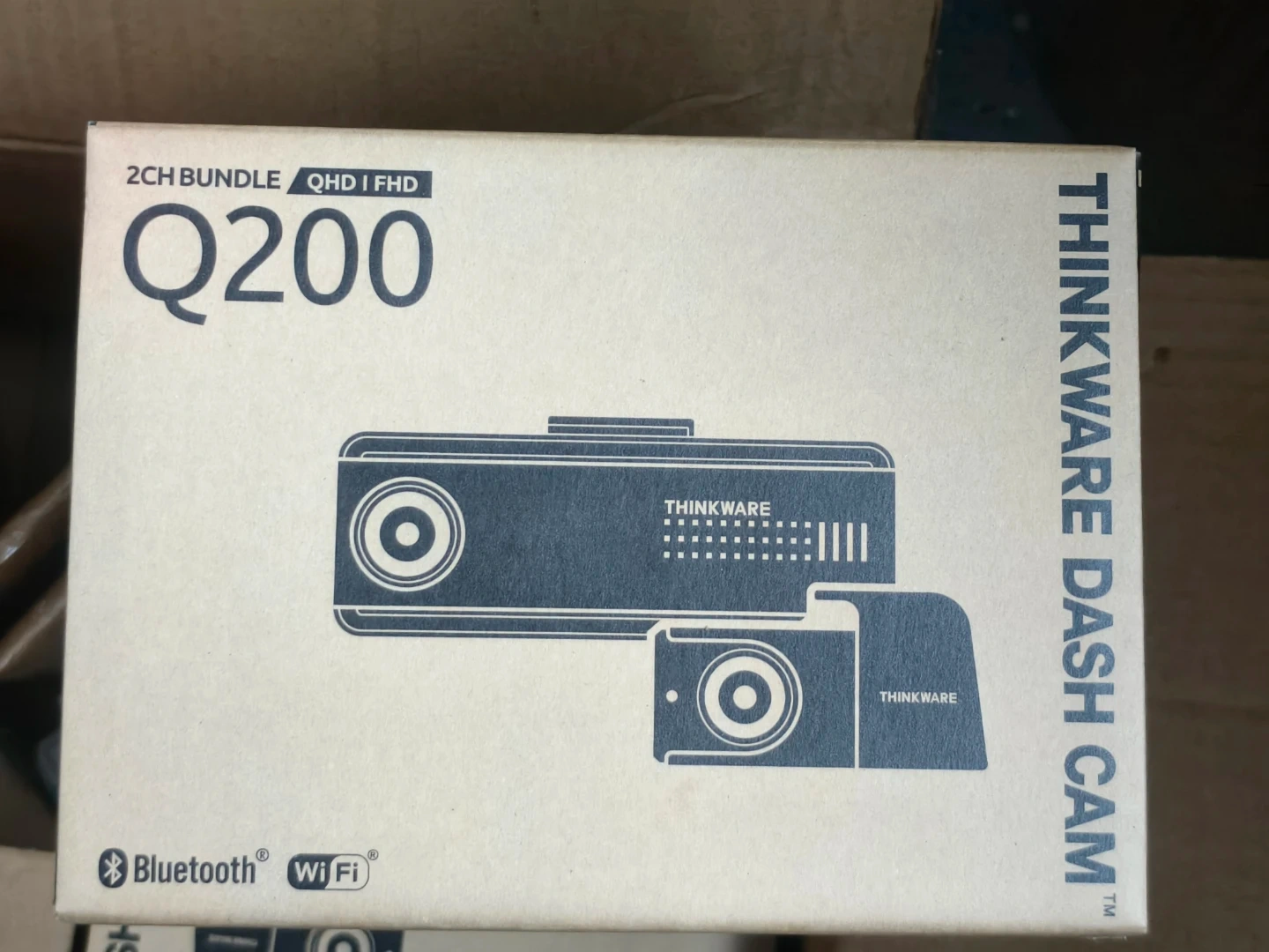 Selling a brand new Thinkware Dash Cam Q200! It's still in its original box and has never been used. It's a 2CH bundle with QHD and FHD recording capabilities. It also features Bluetooth and Wi-Fi connectivity
