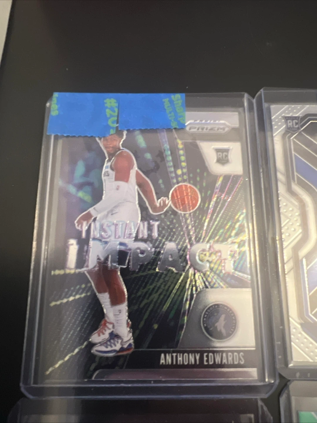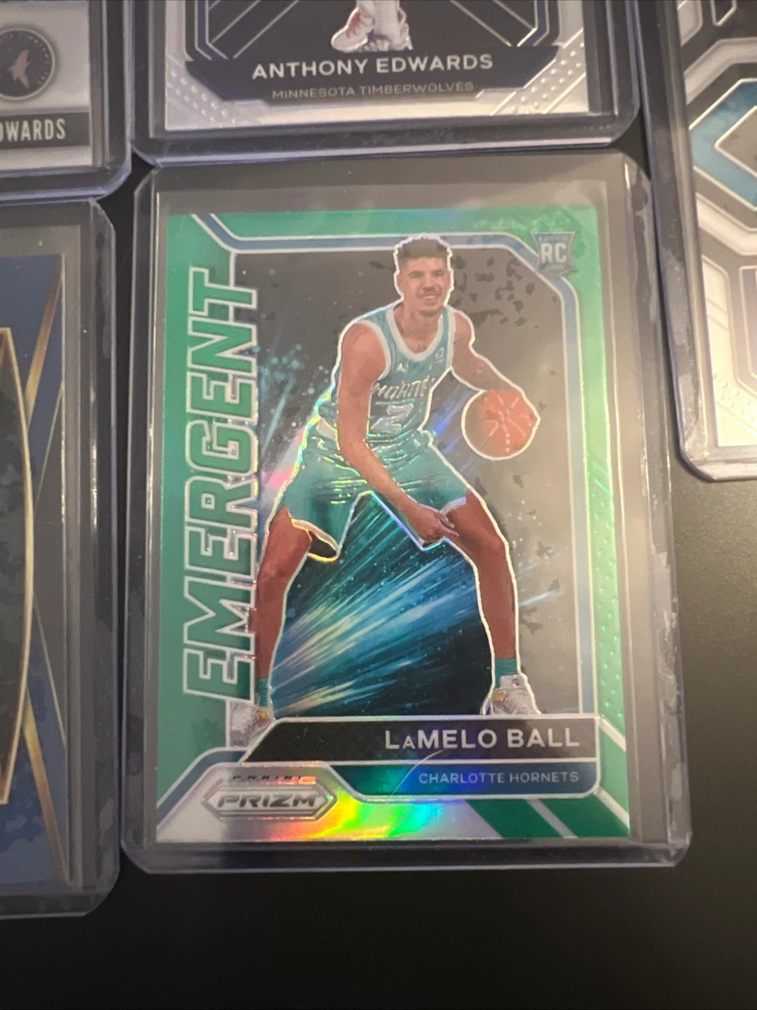 Collection of Panini Prizm NBA trading cards featuring rookie players. Includes Grant Riller with autograph, Anthony Edwards, and LaMelo Ball. Great for basketball card collectors!