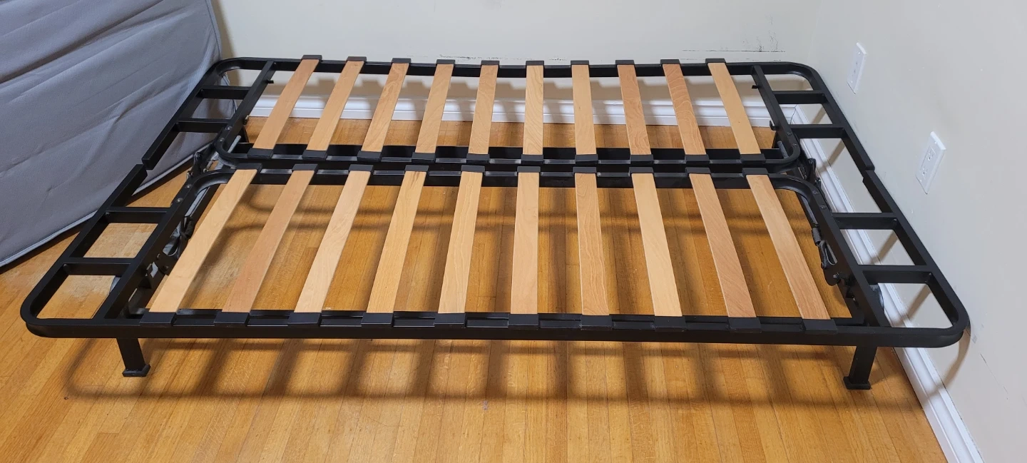 Foldable Metal Bed Frame with Wood Slats