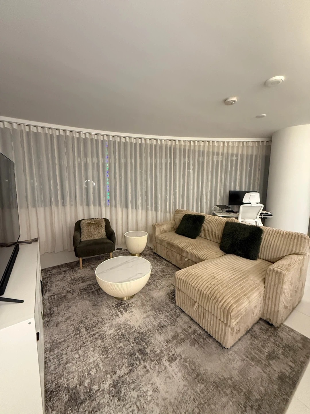 Beige Corduroy Sectional Sofa with Chaise and accent chair