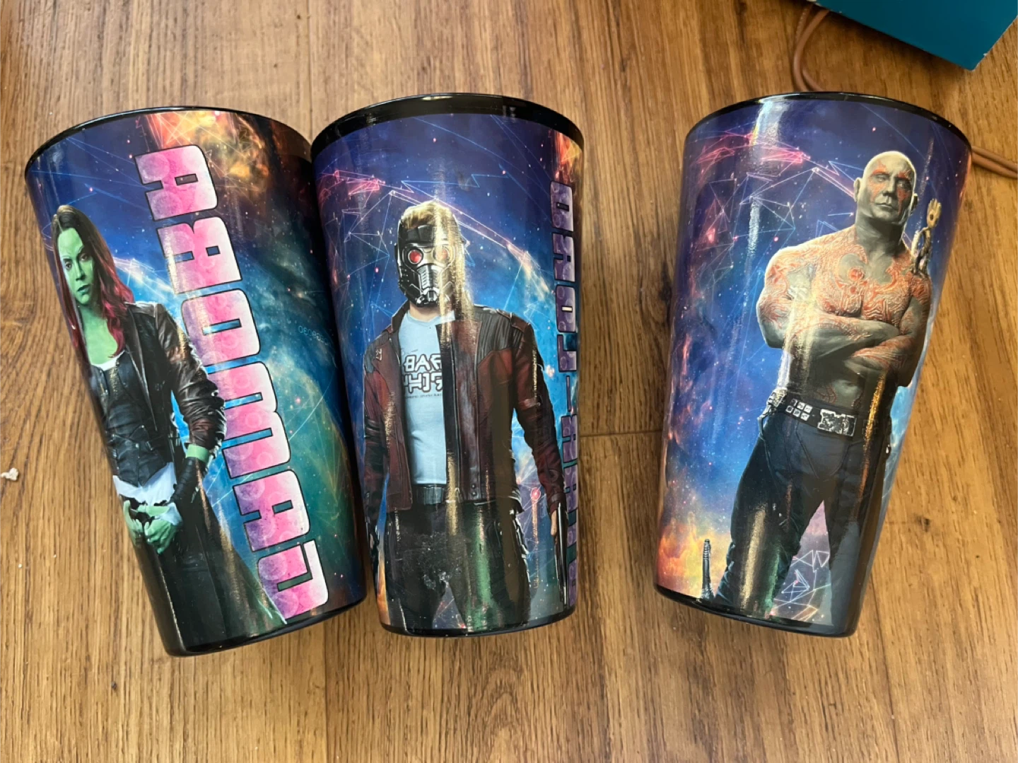 Selling a set of Guardians of the Galaxy tumblers! Each tumbler features a different character from the movie, including Gamora, Star-Lord, and Drax. Perfect for any Marvel fan. All 3 for $10