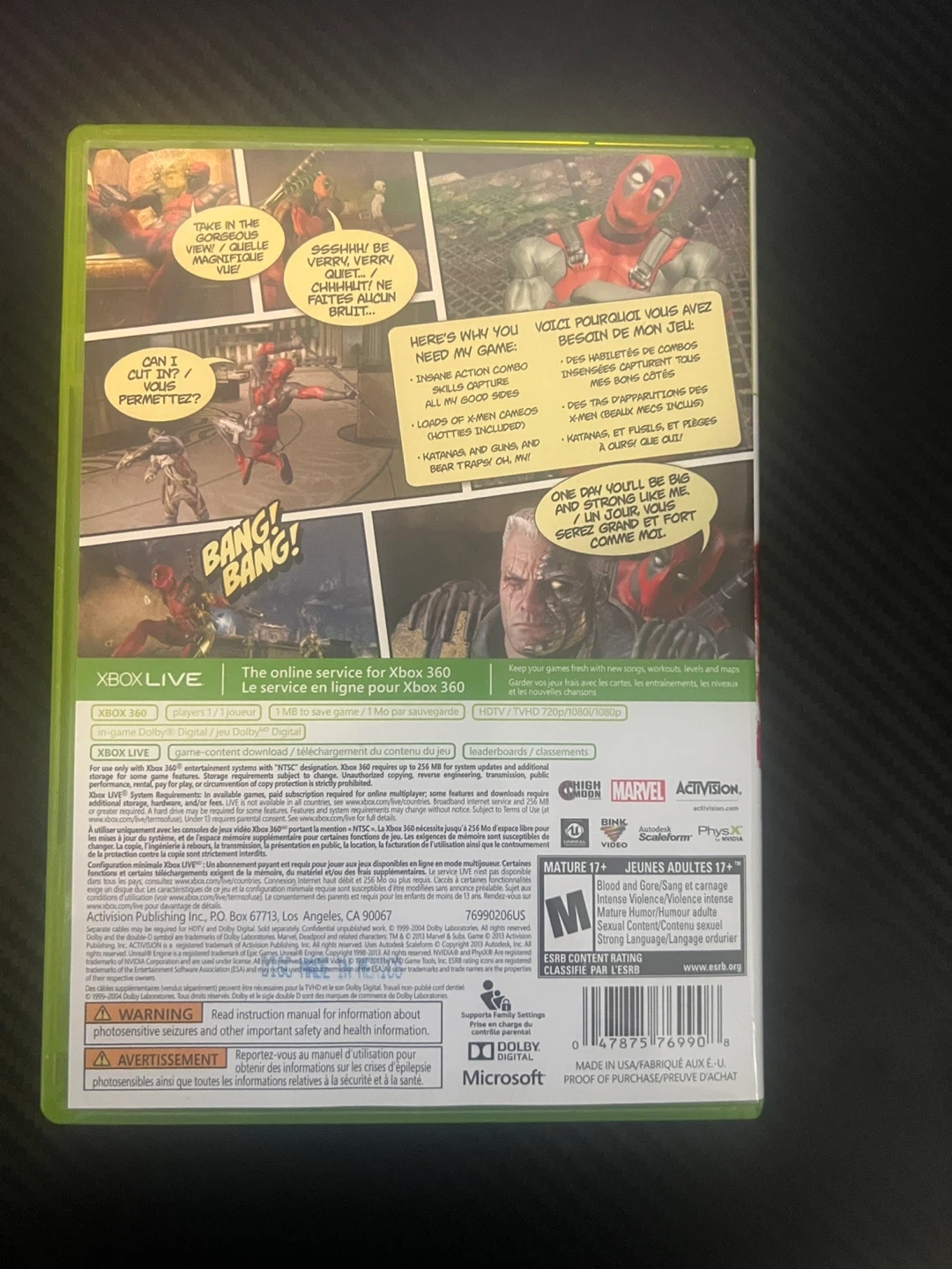 Buy & SellDeadpool Video Game for Xbox 360Deadpool Video Game for Xbox 360$50This is the Deadpool video game for Xbox 360. It's rated M for Mature. The game includes the disc and case.WHERE TO MEETCheck LocationView MapSELLERverifiedMiguelWoodbridge20412 reviews0 chats·1 favorites·18 viewsSEND CHAT TO SELLERHi Miguel! I’m interested in your listing.Hi Miguel! I’m interested in your listing.Get the Karrot app to chatSign In to chat