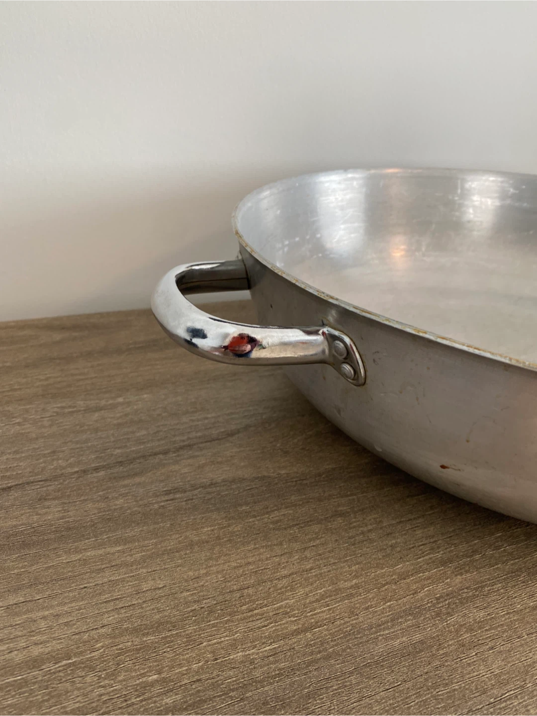 This is a large, durable and deep aluminum pot. It has two sturdy handles for easy carrying. Perfect for family dinners or holiday feasts!