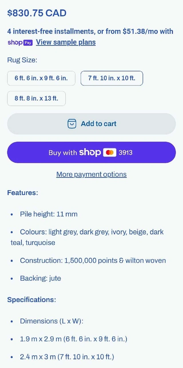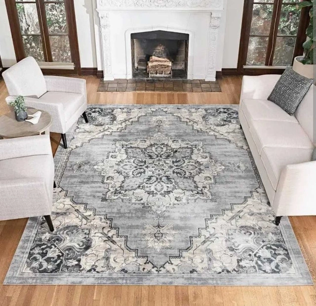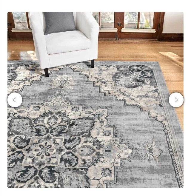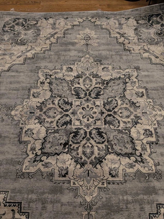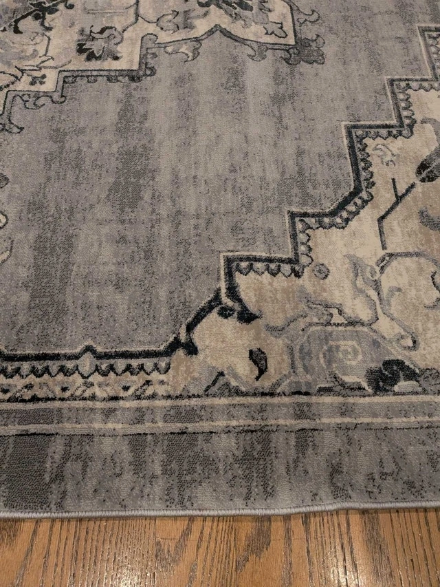 Brand new Gertmenian Thomasville rug, originally $830 + tax. Beautiful and soft with an 11mm pile height and ultra-high density weave. Grey tones. Measures 7ft 10" x 10ft. Let me know if you're interested!