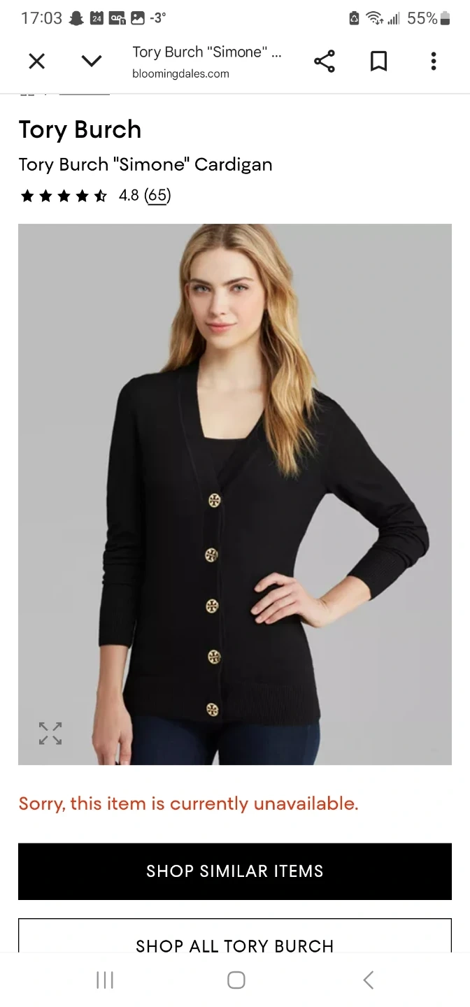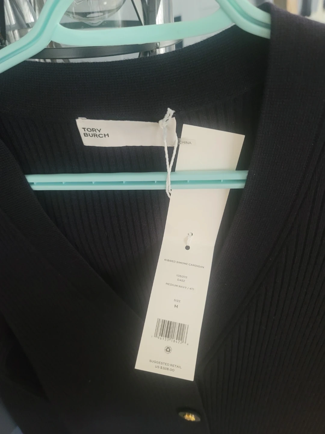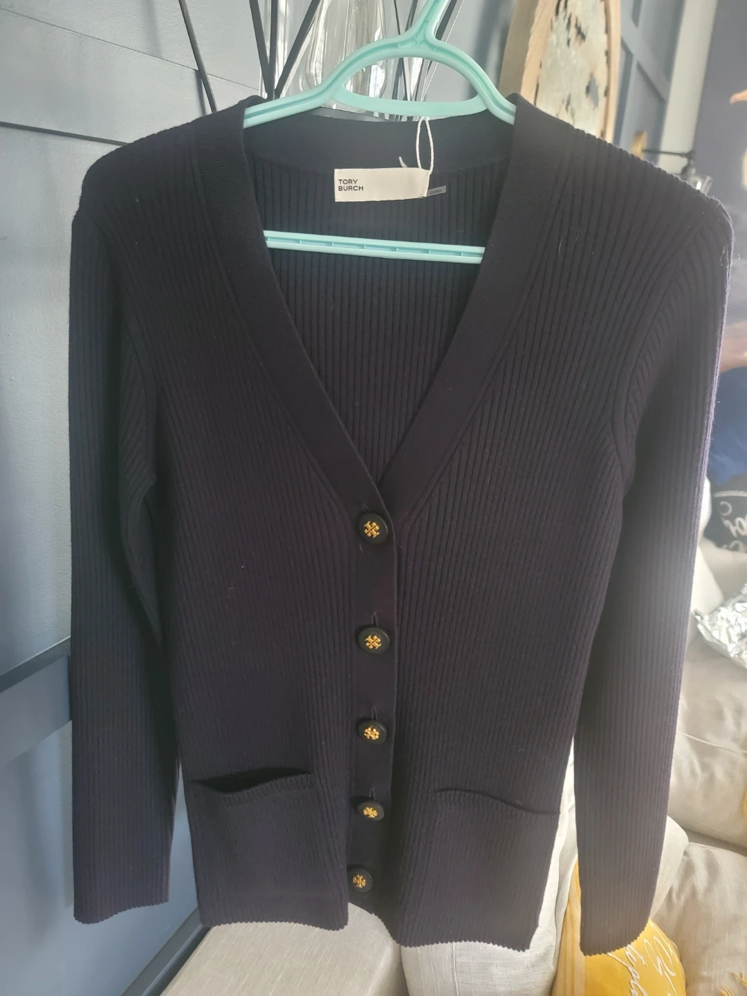 Buy & SellTory Burch Ribbed Simone Cardigan - Navy - MediumTory Burch Ribbed Simone Cardigan - Navy - Medium$149Tory Burch ribbed "Simone" cardigan in navy. Size medium. Features gold-tone logo buttons . Brand new with tags. ConditionNewSizemWHERE TO MEETCheck LocationView MapSELLERverifiedlinzGeorgetown600 reviews0 chats·0 favorites·5 viewsSEND CHAT TO SELLERHi linz! I’m interested in your listing.Hi linz! I’m interested in your listing.Get the Karrot app to chatSign In to chat