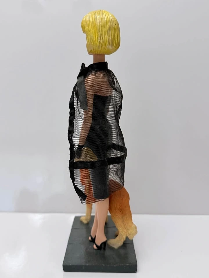 Beautiful collectible ceramic figurine inspired by the iconic 1964 Barbie wearing the elegant “Black Magic” fashion ensemble. This piece is part of the Fred Tang collectible series, known for detailed craftsmanship and vintage Barbie tributes.