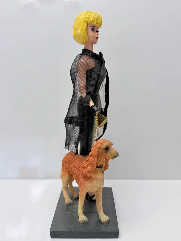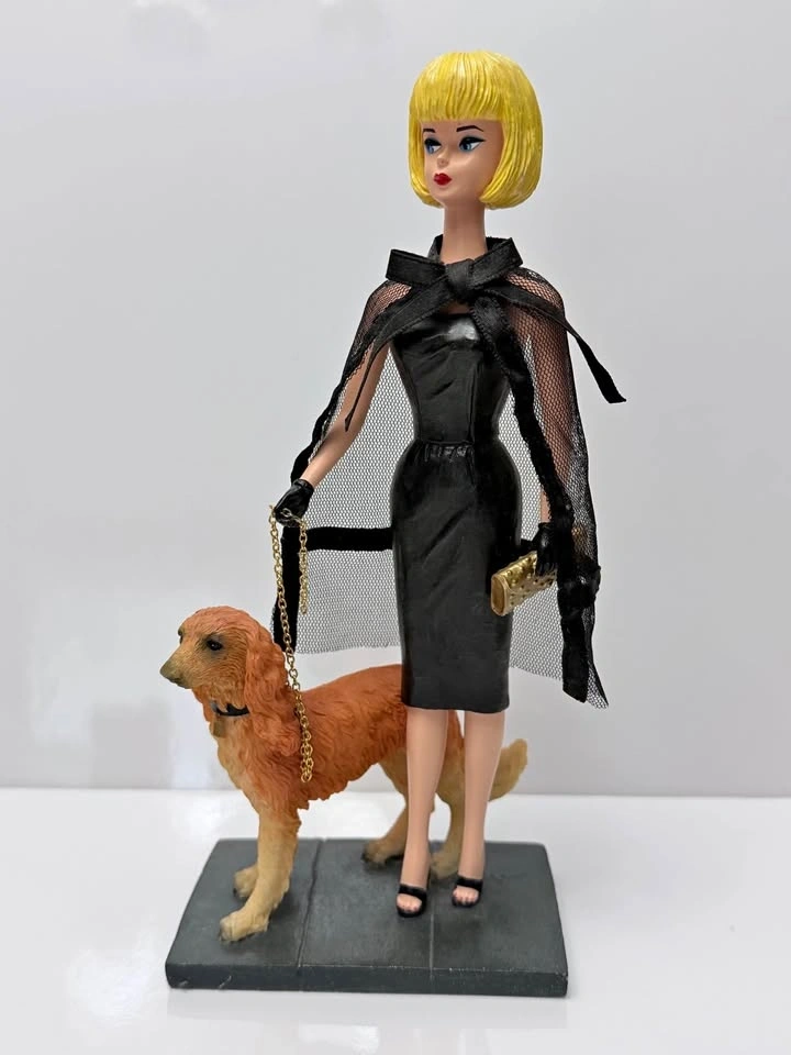 Beautiful collectible ceramic figurine inspired by the iconic 1964 Barbie wearing the elegant “Black Magic” fashion ensemble. This piece is part of the Fred Tang collectible series, known for detailed craftsmanship and vintage Barbie tributes.