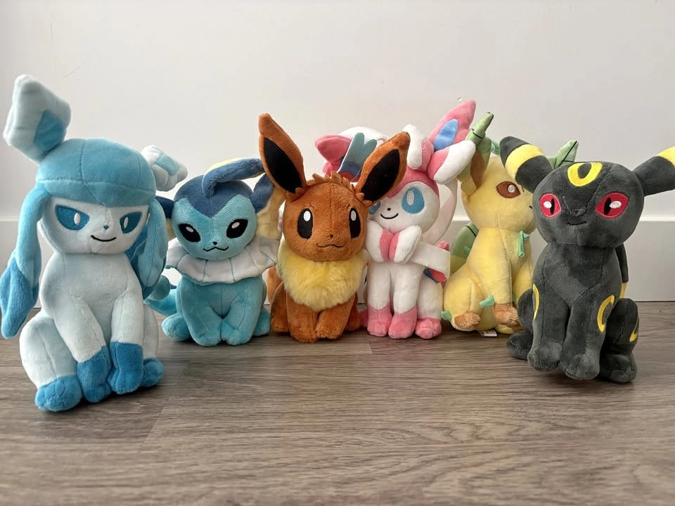 Bought from an authentic LA specialty store. Owned by an adult and kept in clean display conditions. This set includes: Glaceon, Vaporeon, Eevee, Sylveon, Leafeon, and Umbreon. Flareon, Jolteon, and Espeon are missing. All plush are in excellent condition: clean, no stains or damage, soft, and well-kept with authentic San-Ei tags. Selling as a bundle. Pickup at Lions Gate Community Center in North Van. Price: $160 CAD.