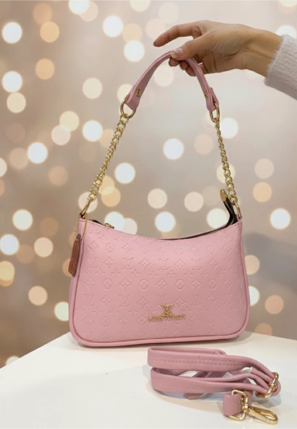 Selling a cute Louis Vuitton shoulder bag in pink leather! It's in great condition and comes with a gold chain strap and an additional leather strap
