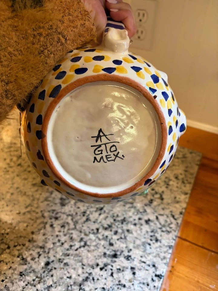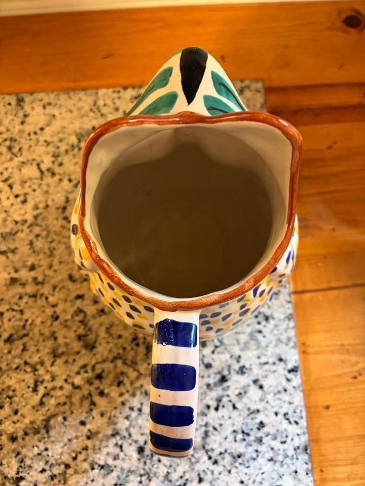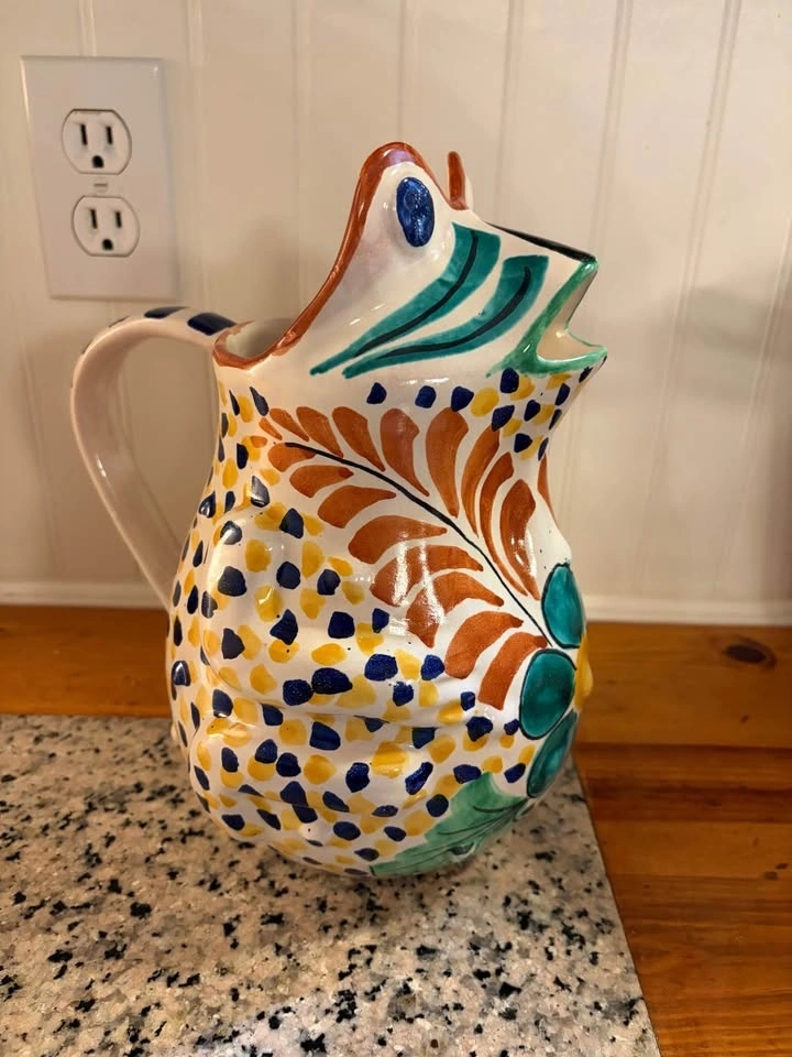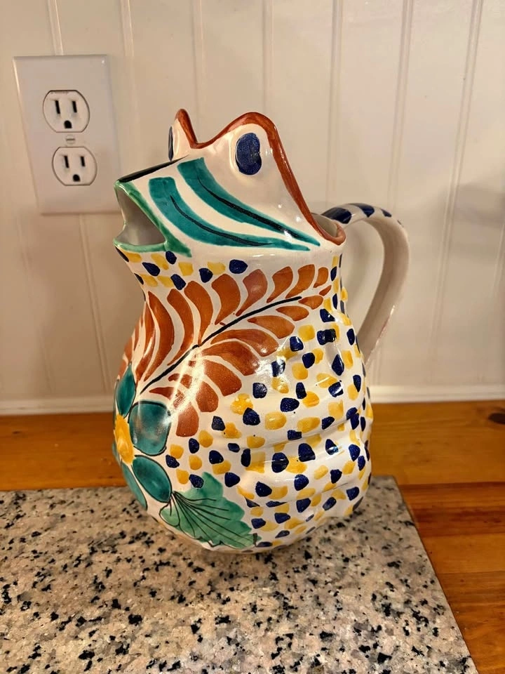 Unique frog pitcher. Hand-painted pottery with vibrant colors and a fun design. Great for serving drinks or just as a decorative piece. Retails for $85 USD. Pick up East Abbotsford.