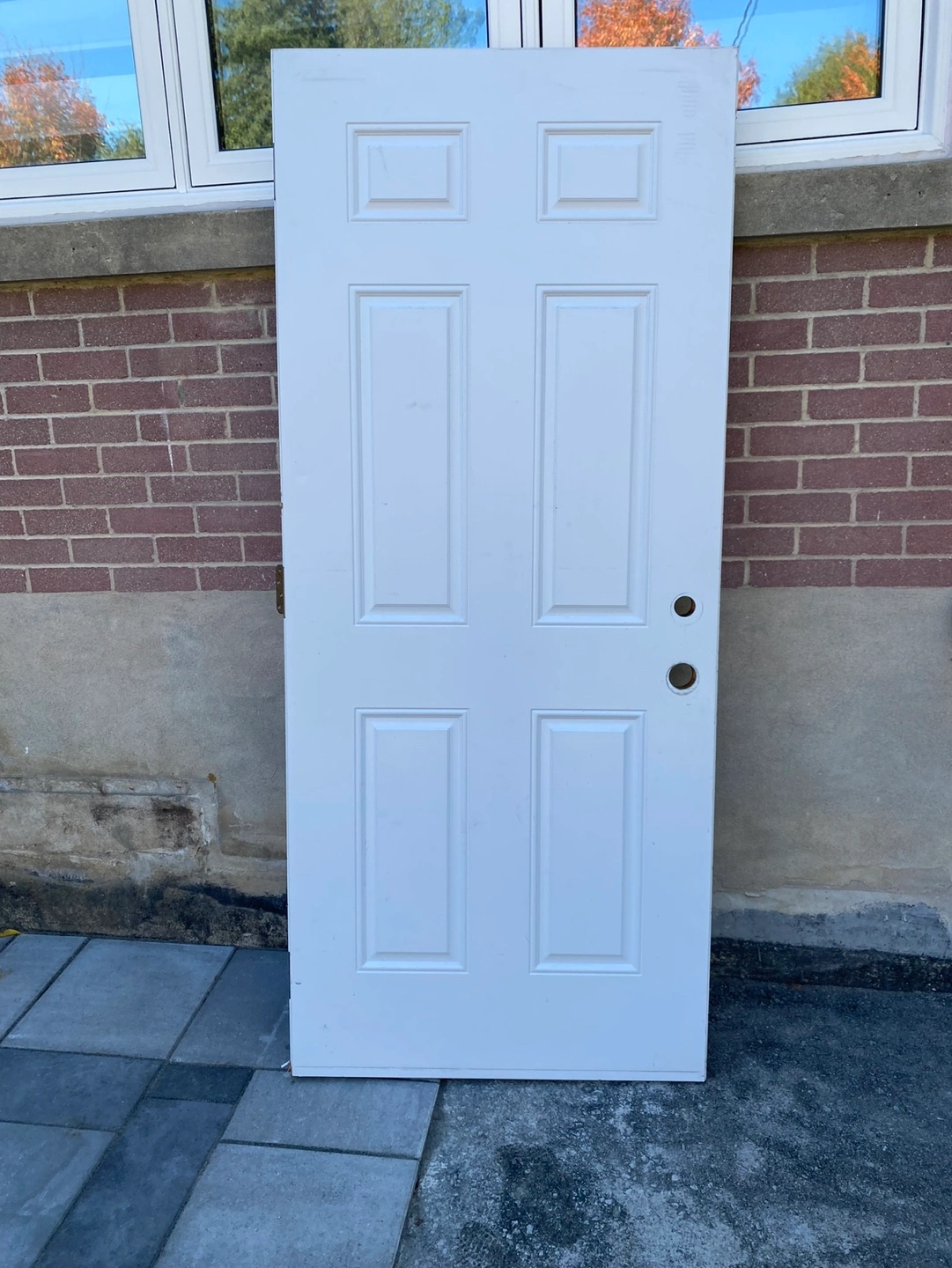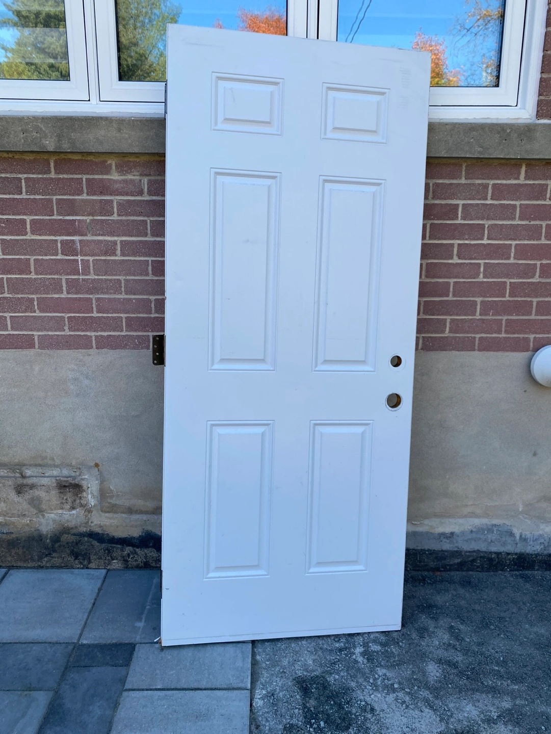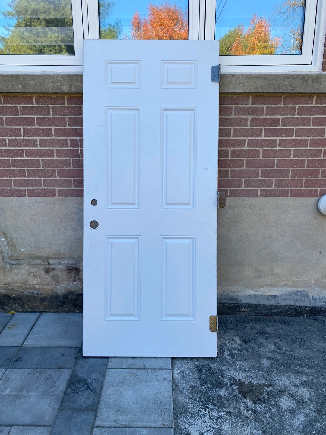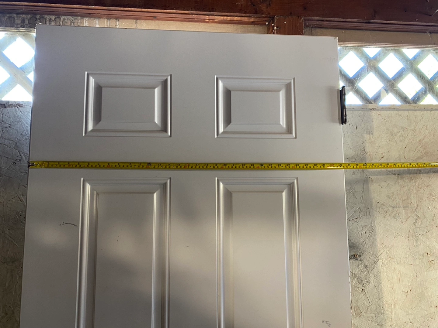 Pre-owned white outdoor. Six panels. Measures 79 inches tall x 33 1/4 inches Excellent condition. Includes hinges.