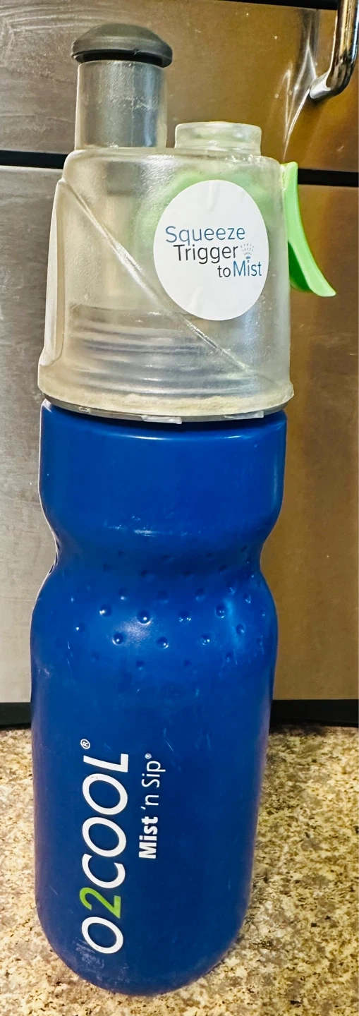 This O2COOL Mist 'n Sip bottle keeps you hydrated and cool. It features a spray nozzle to mist you on demand. Squeeze the trigger to mist!