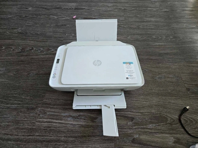 Selling a used HP DeskJet 2752 all-in-one printer. It offers printing, scanning, and copying capabilities and is fully functional for everyday home or office tasks. Functions: Print, copy, scan. Print technology: HP Thermal Inkjet. Connectivity: Wireless. Output Type: Colour. Also comes with letter size papers. If you're seeing this ad, the printer is available! I am clearing out my place, so I need it gone!