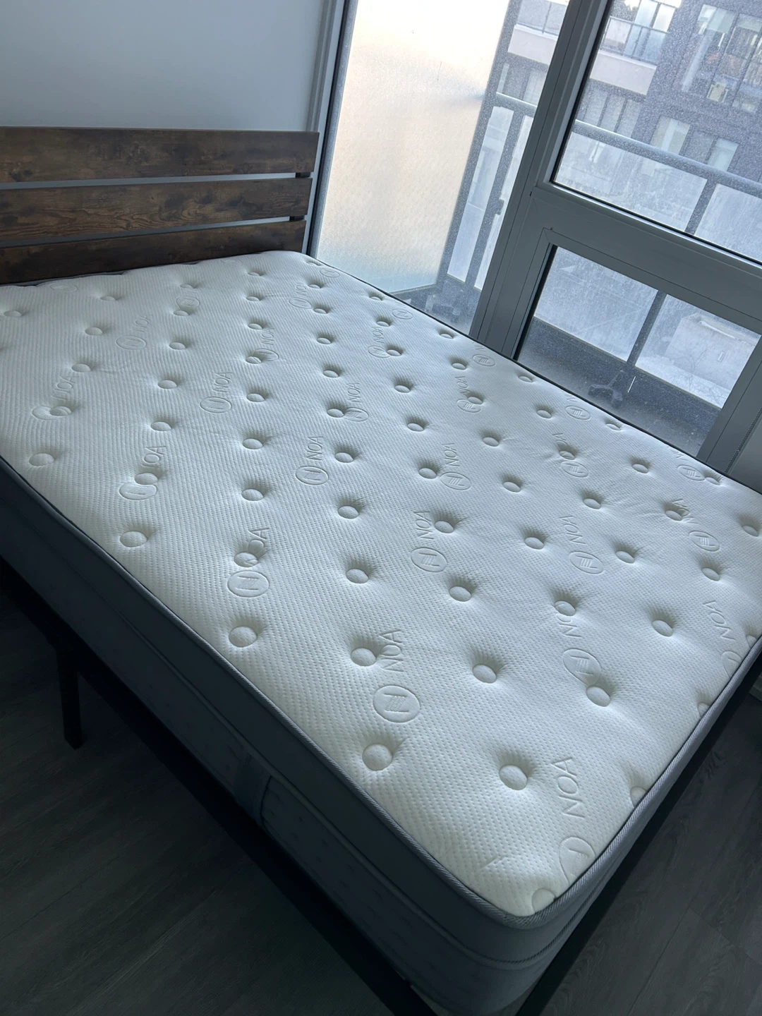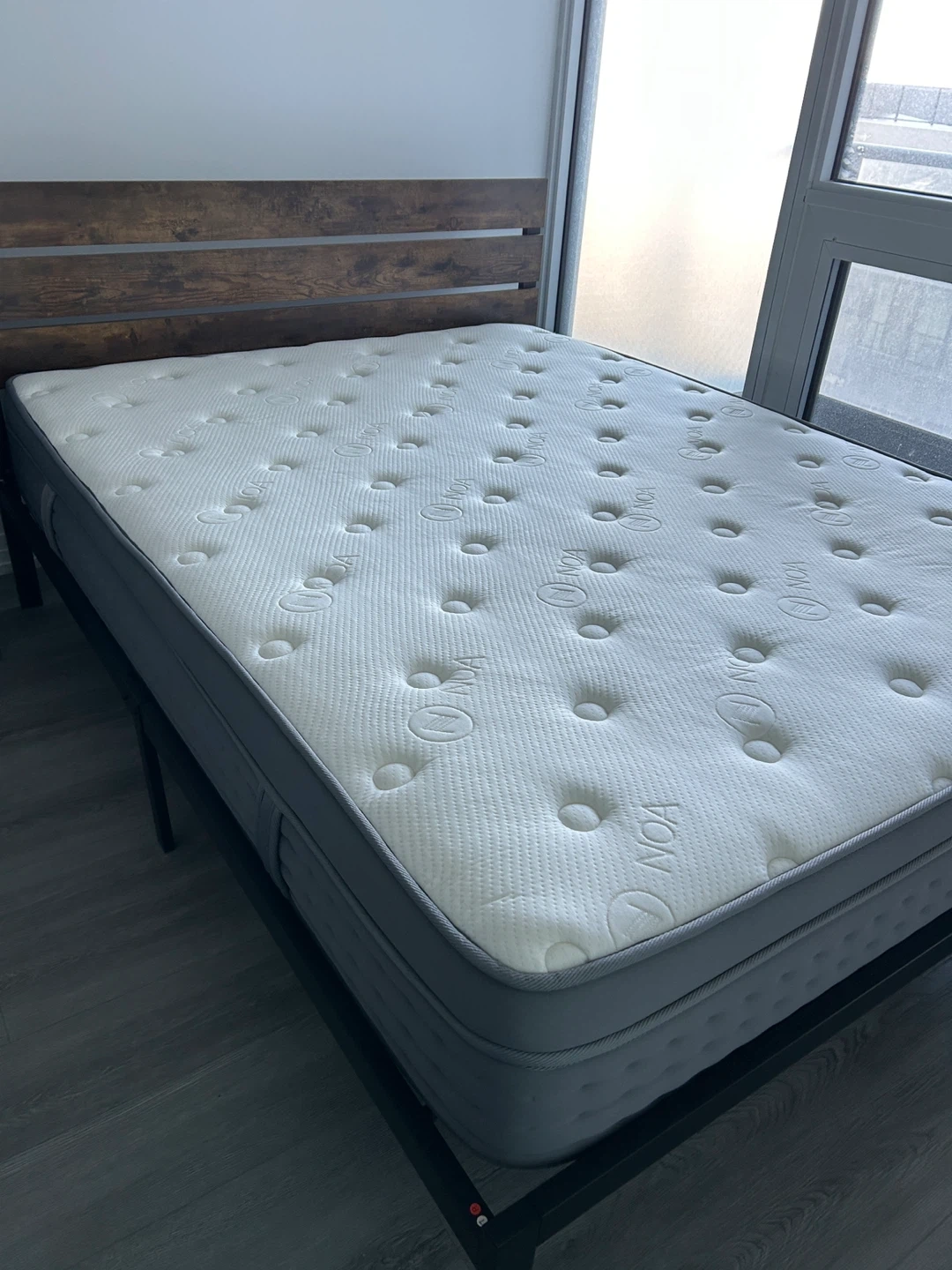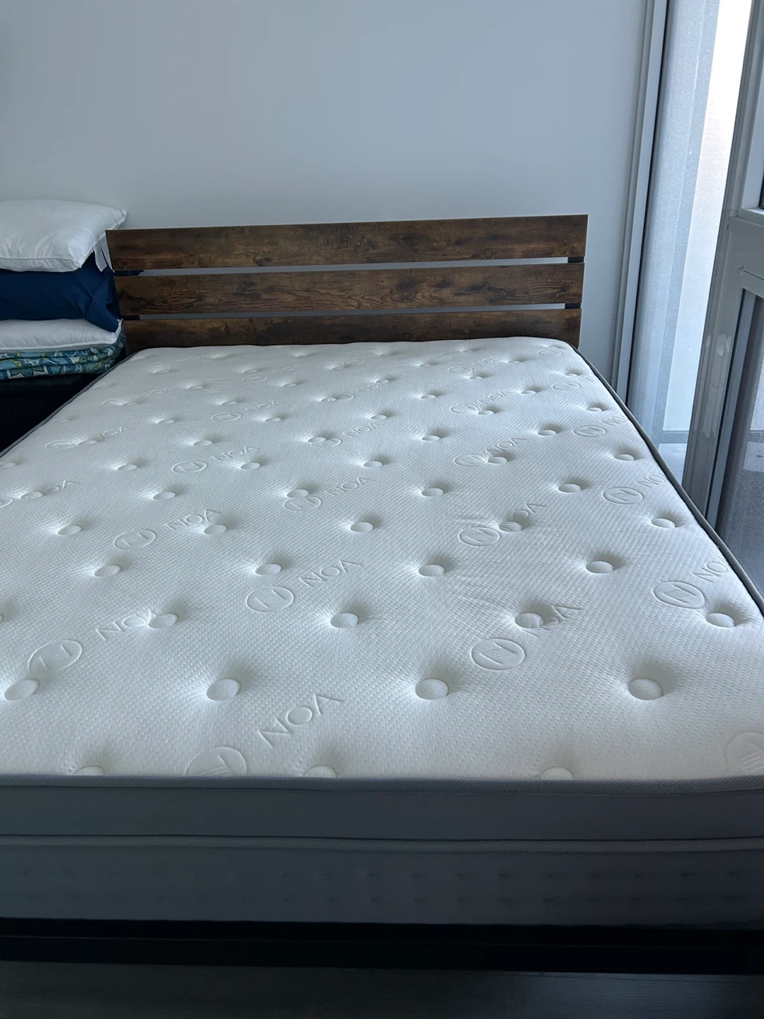 NOA Queen sized mattress that’s been used less than 3 years. It's a comfortable mattress that’s firm and great for a good night's sleep. It’s always been used with a mattress protector and is still very firm. It’s a 8/10 firmness in my opinion.