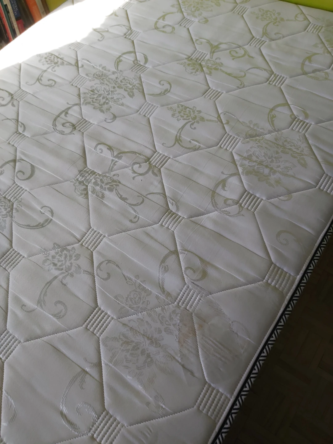 Very good condition full/double size mattress by Orthopedic Classic. Canadian made. Used very lightly and aired out in the sun. A bit on the firm side. Bedframe with skirt also available, as well as cleaned bedsheets, if needed.