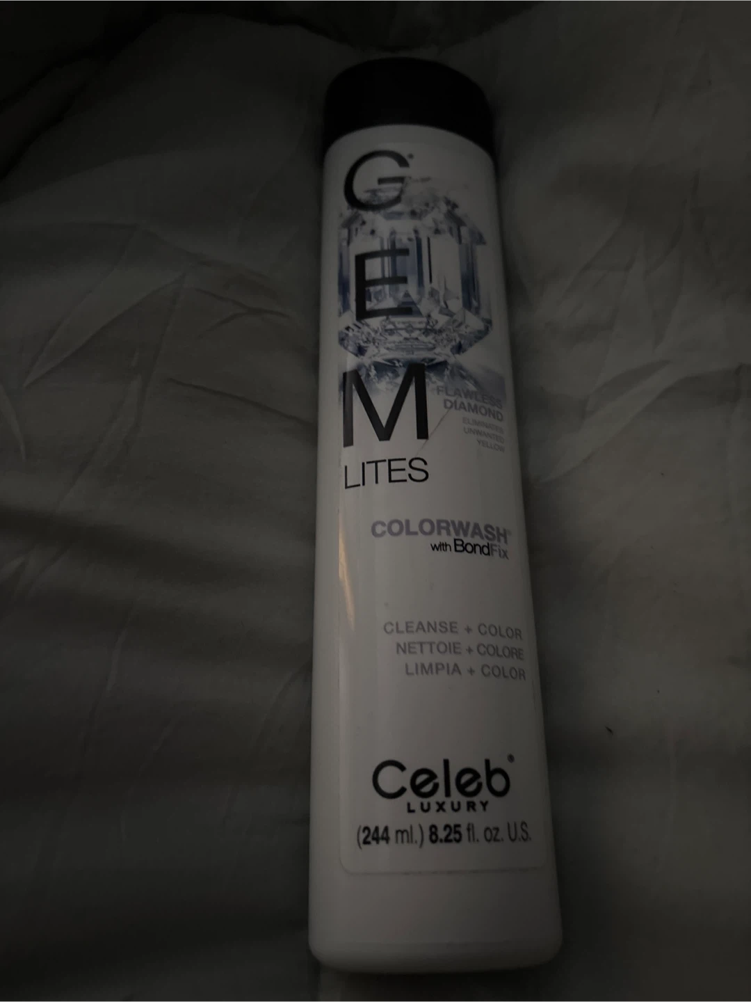 Celeb Luxury Gem Lites Colorwash with BondFix. This product cleanses and colours hair. It's 8.25 fl. oz. (244 mL) in size. Use it for toning or deposit colour.