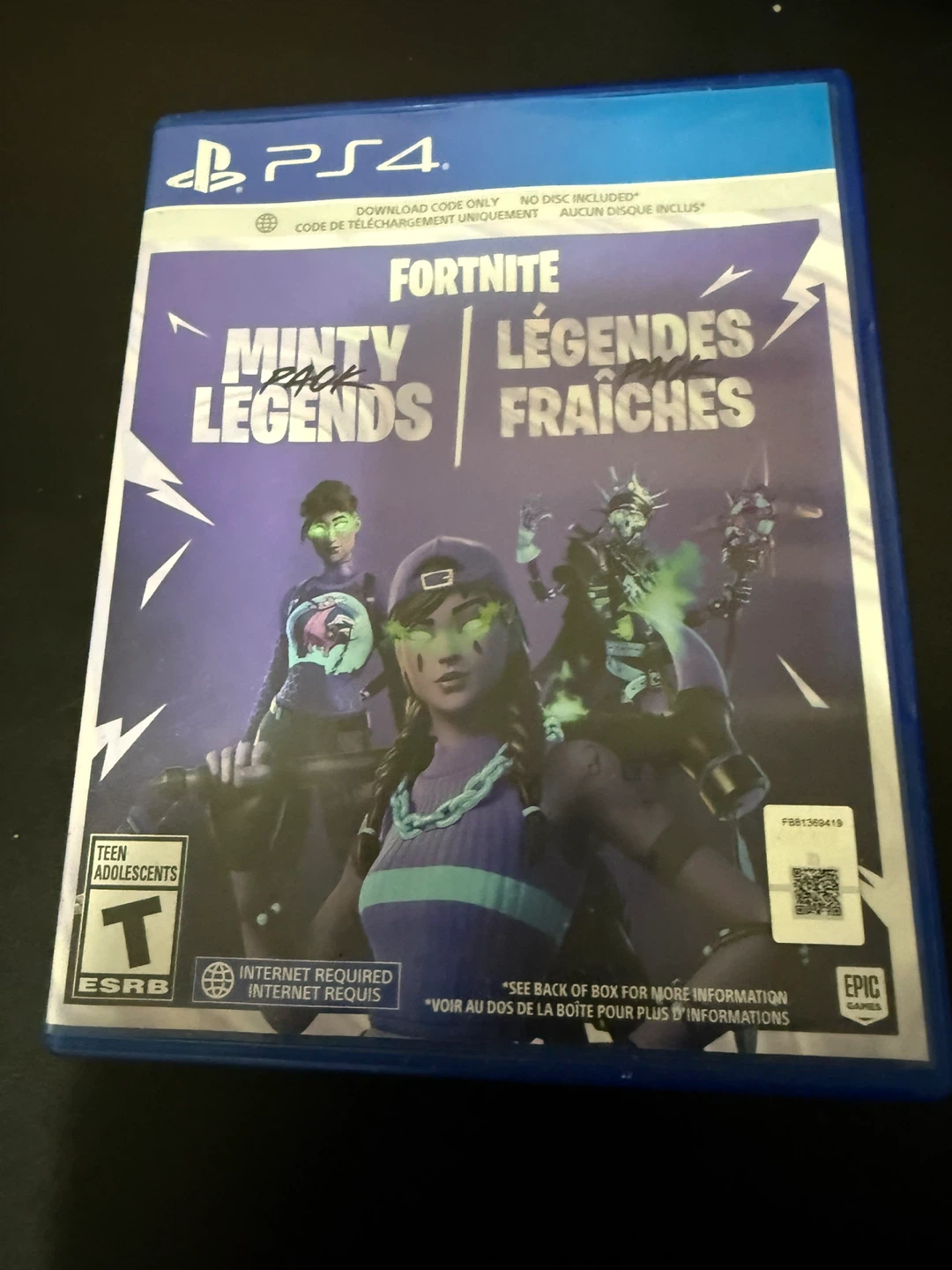Selling a copy of Fortnite Minty Legends Pack for the PS4. It's in great condition and ready for a new player to enjoy! Includes everything you need to chill out the competition including Fresh Aura Outfit, Minty Bomber Outfit, Skellemint Oro Outfit, Minty Mountaineer Backbling, Minty Multipack Pickaxe, Triple Mint Scepter Pickaxe and Freshbreaker Pickaxe