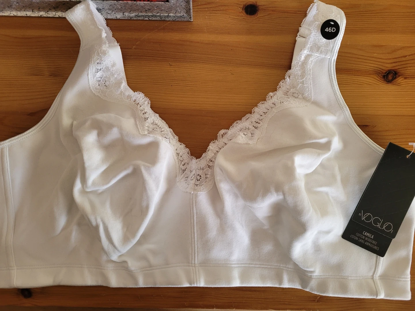 Brand new VOGLO CAMILA bra. It's a size 46D in white. Made with a cotton blend and features lace trim. This bra offers comfortable support for everyday wear.
