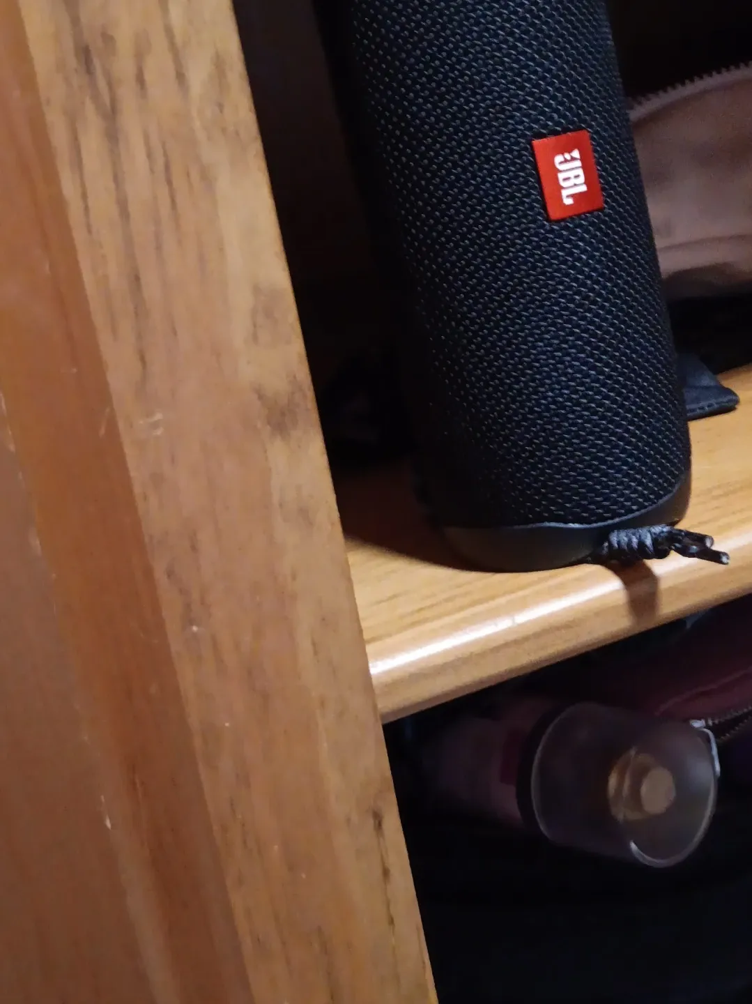 This is a black JBL Flip 5 portable Bluetooth speaker. It's great for taking your music anywhere! Durable mesh exterior.