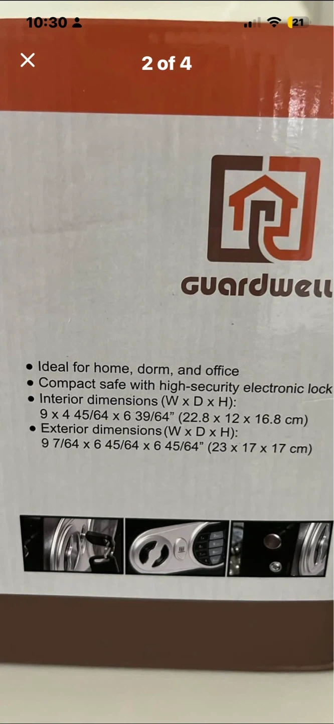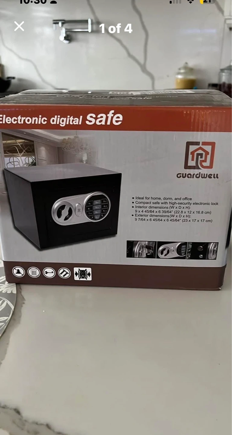 Compact safe with a high-security electronic lock. Ideal for home, dorm, and office. Exterior dimensions are 9 7/64 x 6 45/64 x 6 45/64 inches.yonge and steels