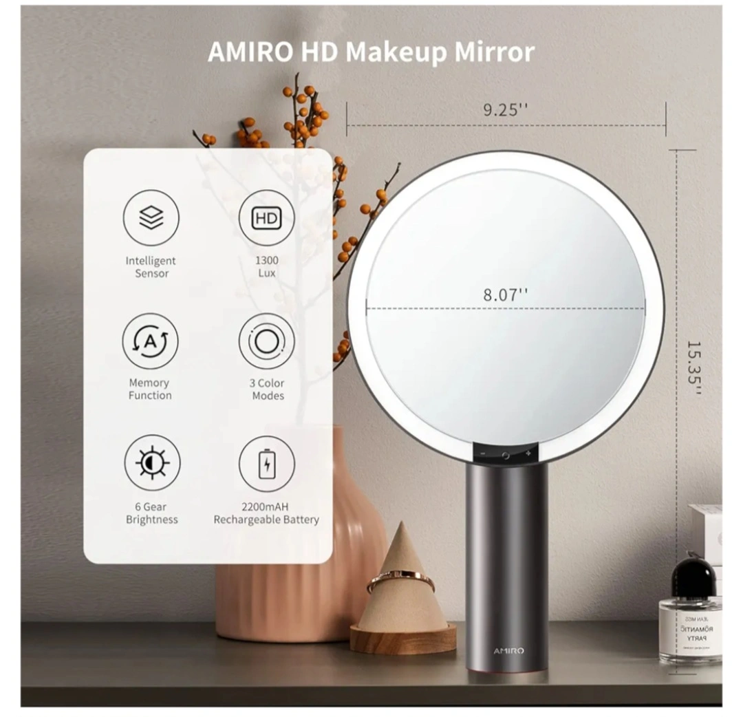 Brand New Amiro Mirror 9" Lighted Makeup Mirror Smart Sensor Touch Control Rechargeable Cordless