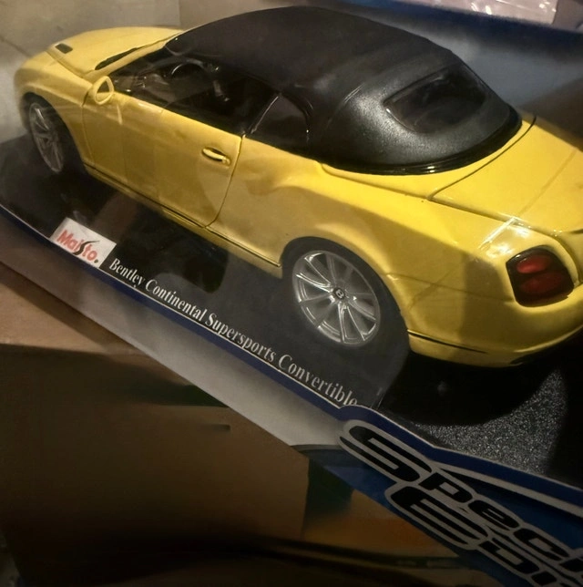 I'm selling a Maisto Special Edition 1:18 scale diecast model of a Bentley Continental Supersports Convertible. This model car is in new condition, still in its original packaging, and has never been displayed. The vibrant yellow colour makes it a standout piece for any collection. Brand: Maisto. Scale: 1:18. Model: Bentley Continental Supersports Convertible. Colour: Yellow. Condition: New in Box. If you are reading this, then good news - it is still available!