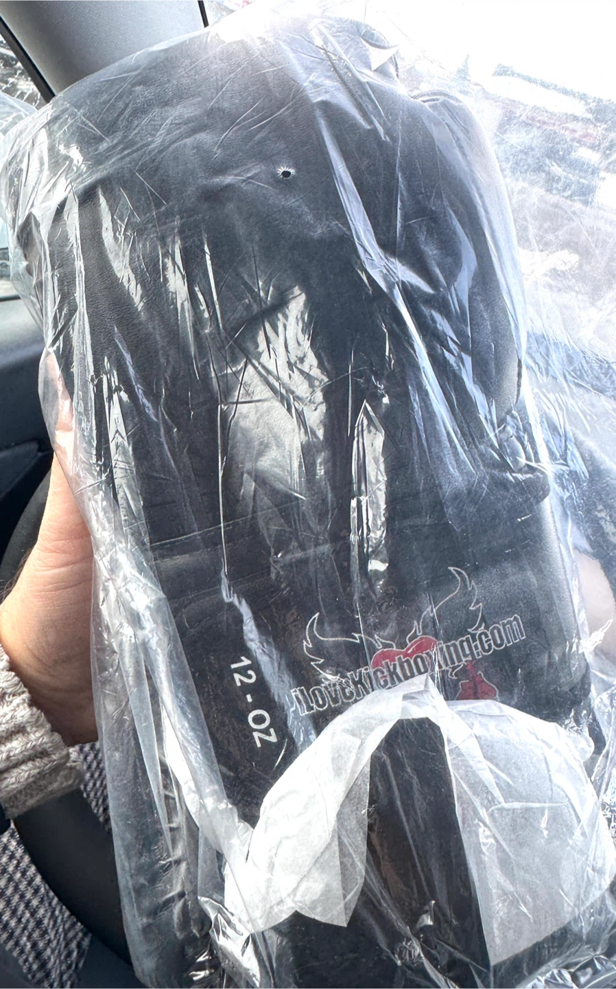 Selling I Love Kickboxing 12-oz gloves. Black colour. They are in their original packaging.