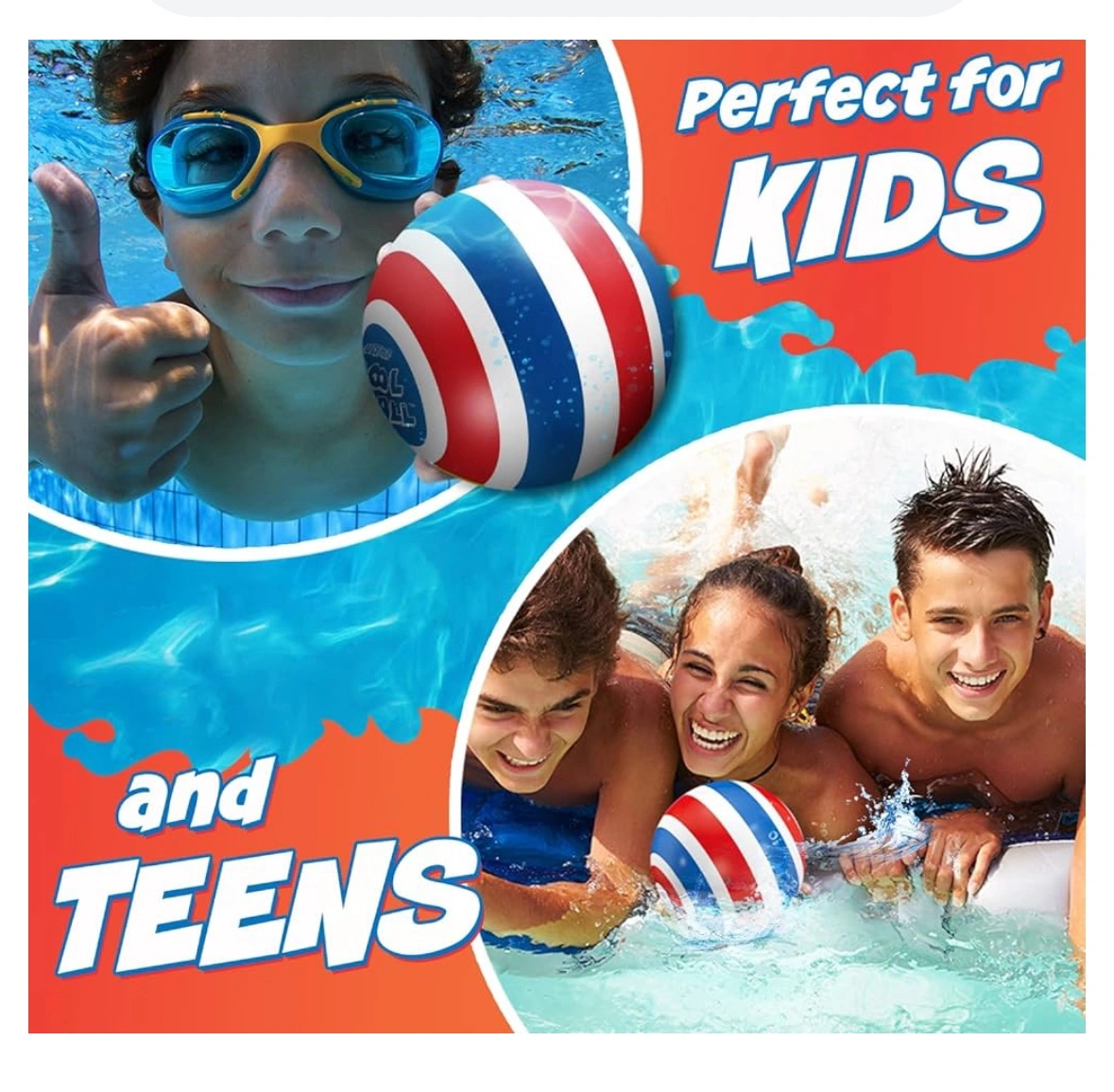 Fun water toy for kids and teens; fills with water for underwater games. Nine inches in diameter and weighs 14.5 lbs when full.