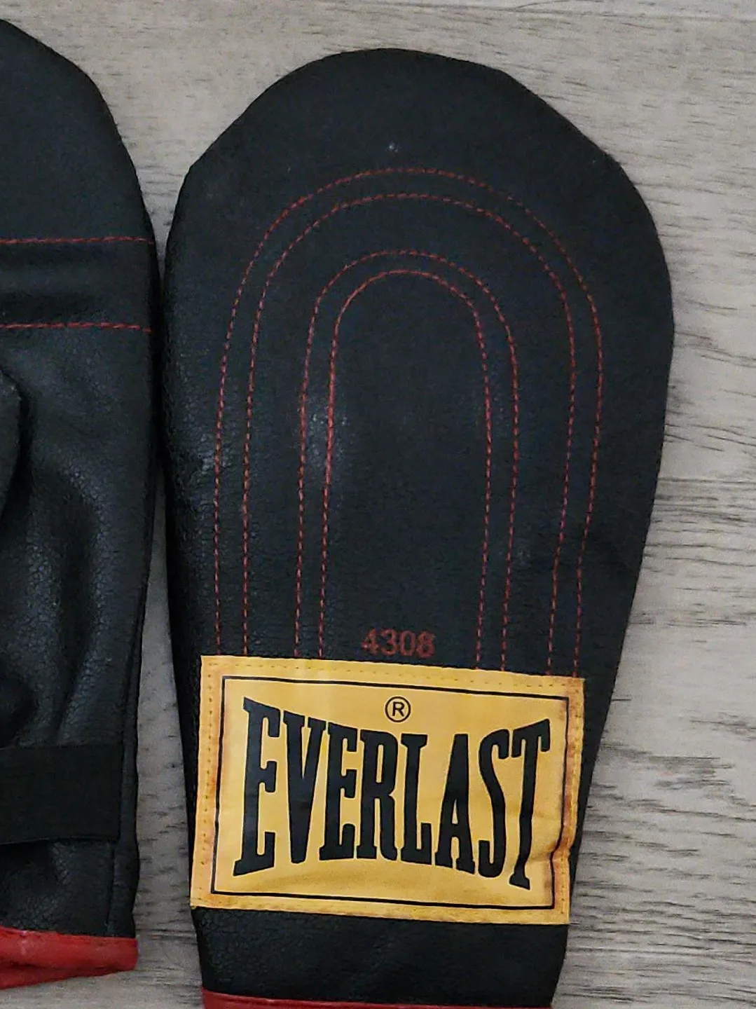 Selling a pair of Everlast boxing mitts, model 4308. They are black with red trim and have the Everlast logo on them. Great for training!
