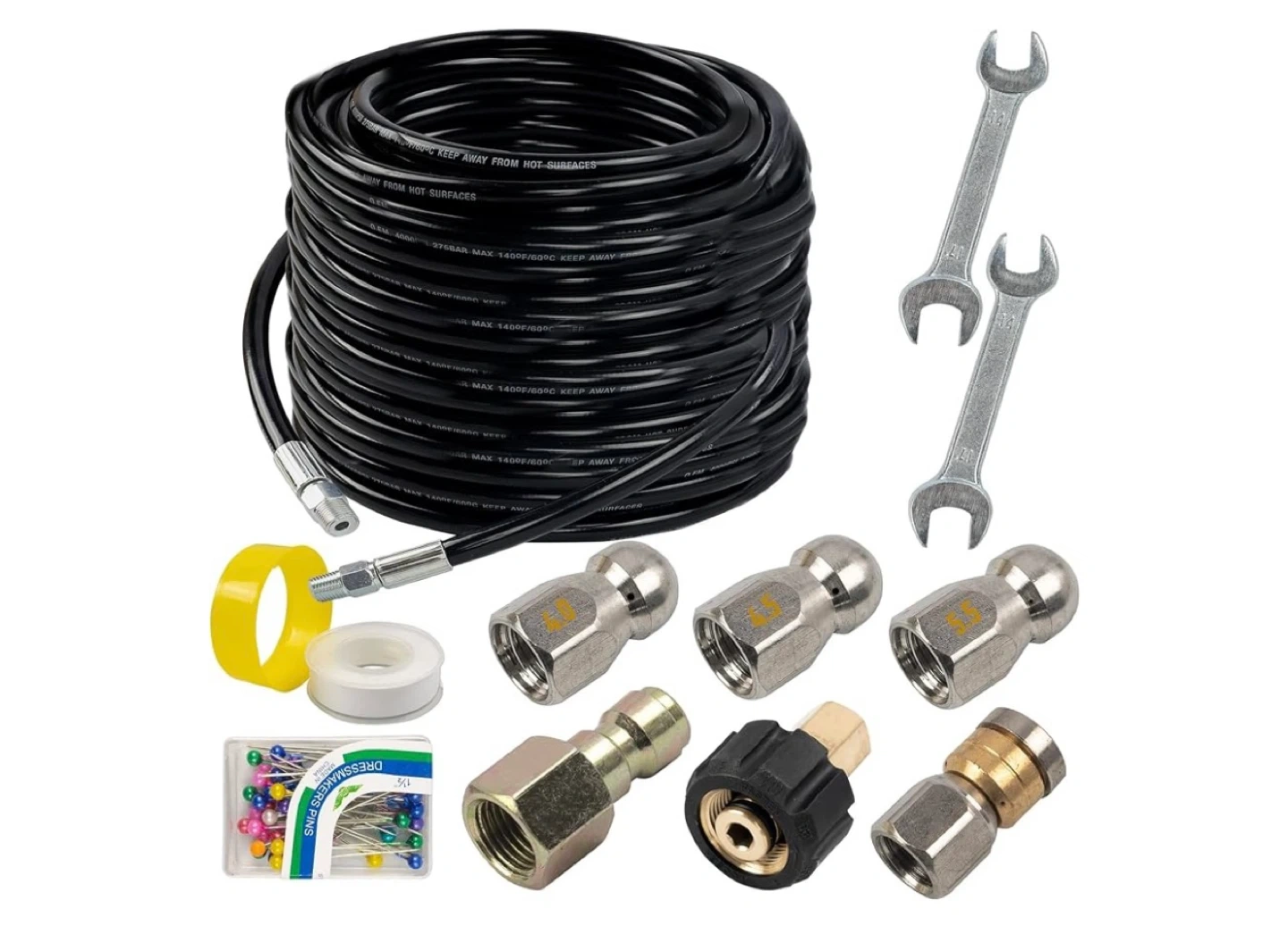 Pressure Washer Hose Kit with Nozzles and Wrenches