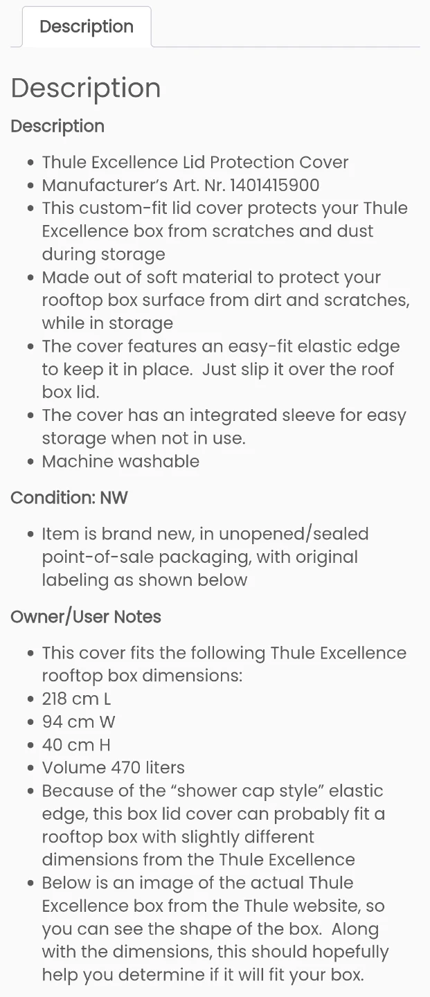 Buy & SellThule Excellence Lid Protection Cover NEWThule Excellence Lid Protection Cover NEW$50Pickup Seton SEConditionNewWHERE TO MEETSetonView MapSELLERBrandonSeton12710 reviews0 chats·0 favorites·3 viewsSEND CHAT TO SELLERHi Brandon! I’m interested in your listing.Hi Brandon! I’m interested in your listing.Get the Karrot app to chatSign In to chat