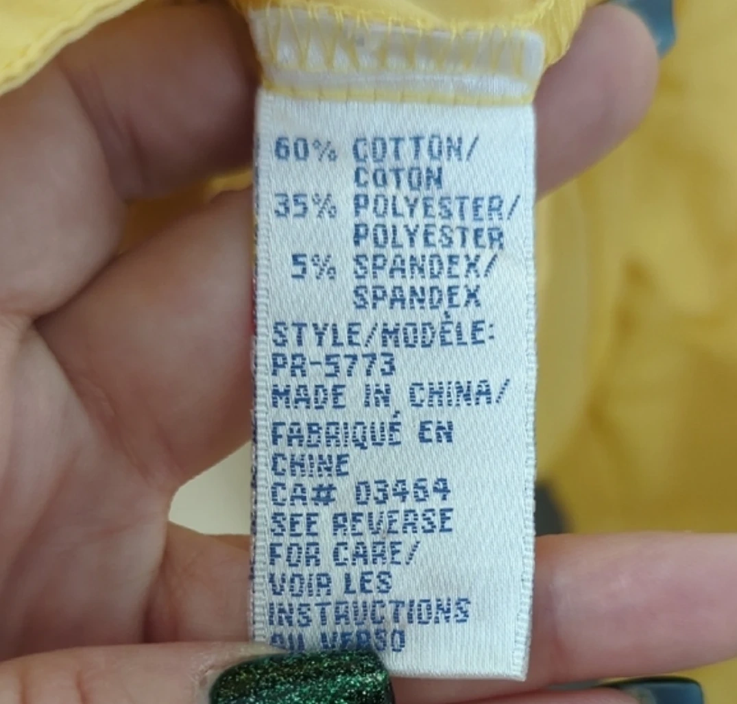 This yellow button-up shirt is made from a 60% cotton, 35% polyester, and 5% spandex blend. It's a size 2 and features a classic collar with 3/4 length sleeves. A versatile piece for any wardrobe!